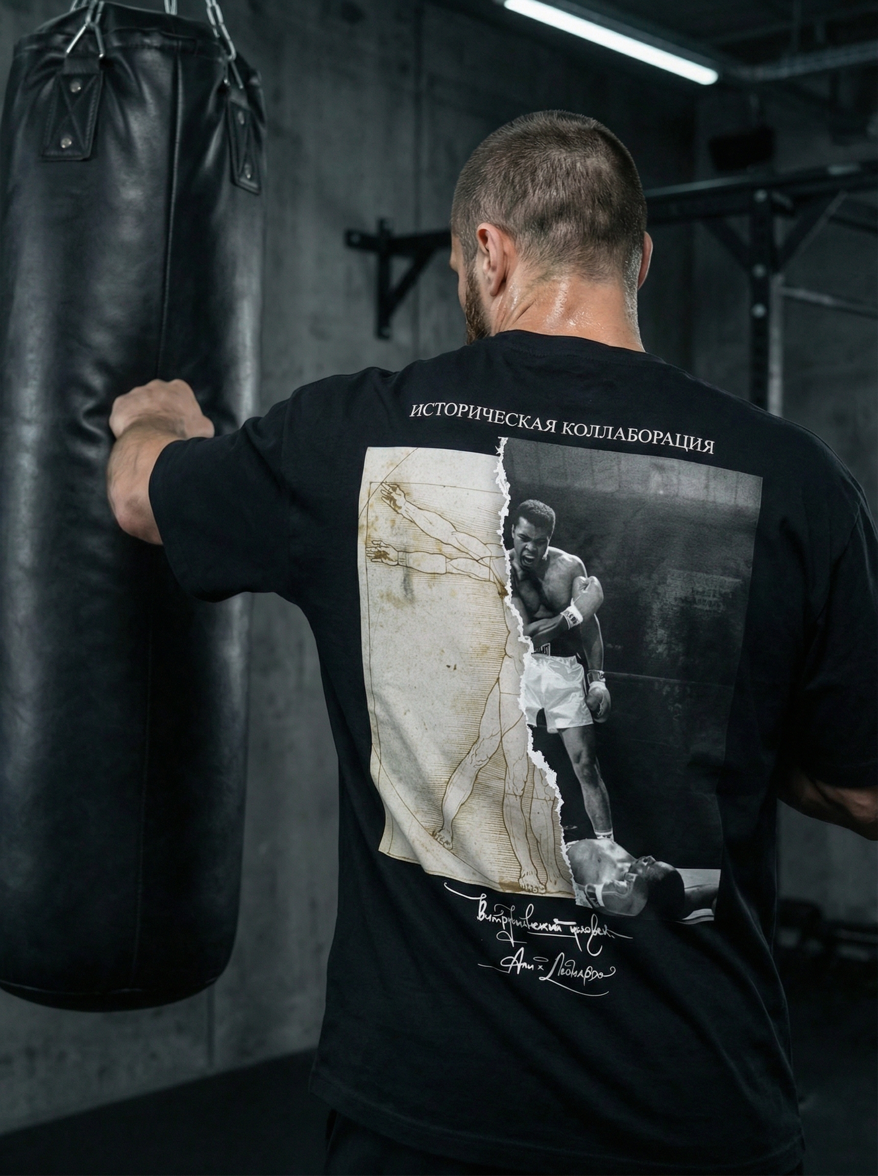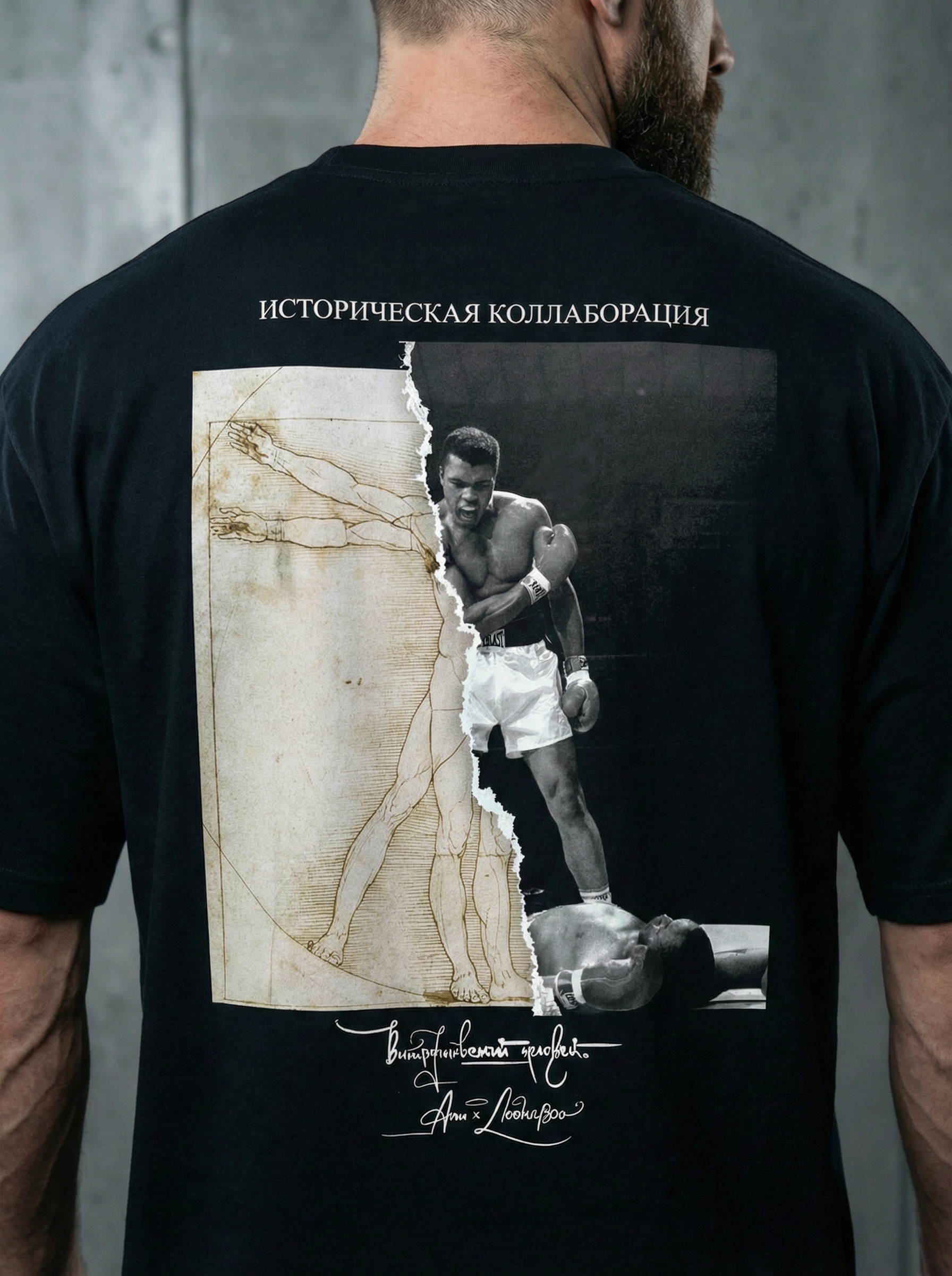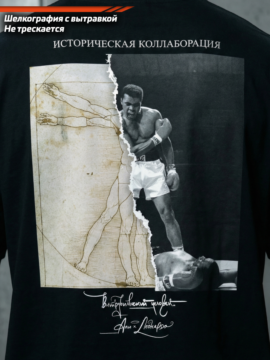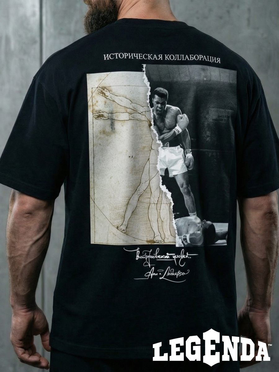 Футболка “Витрувианский человек х Мухаммед” Али соединяет в себе два символа величия: изображение Витрувианского человека и легендарного боксера Мухаммеда Али. Этот уникальный дизайн символизирует гармонию между физическим и духовным, между классическим и современным, между наукой и спортом. Носите эту футболку, чтобы выразить свою уважение к великим личностям и показать свою любовь к спорту и искусству.