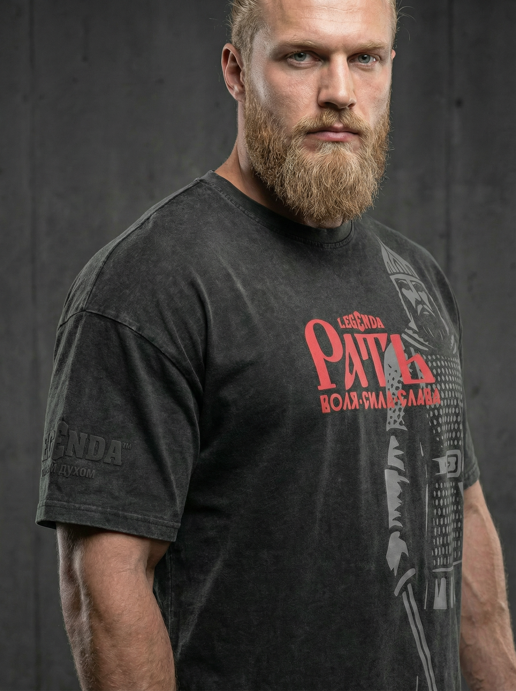 Футболка от коллаборации Legenda & РАТЬ – это не просто предмет гардероба, а настоящая атмосфера силы и боевого духа.