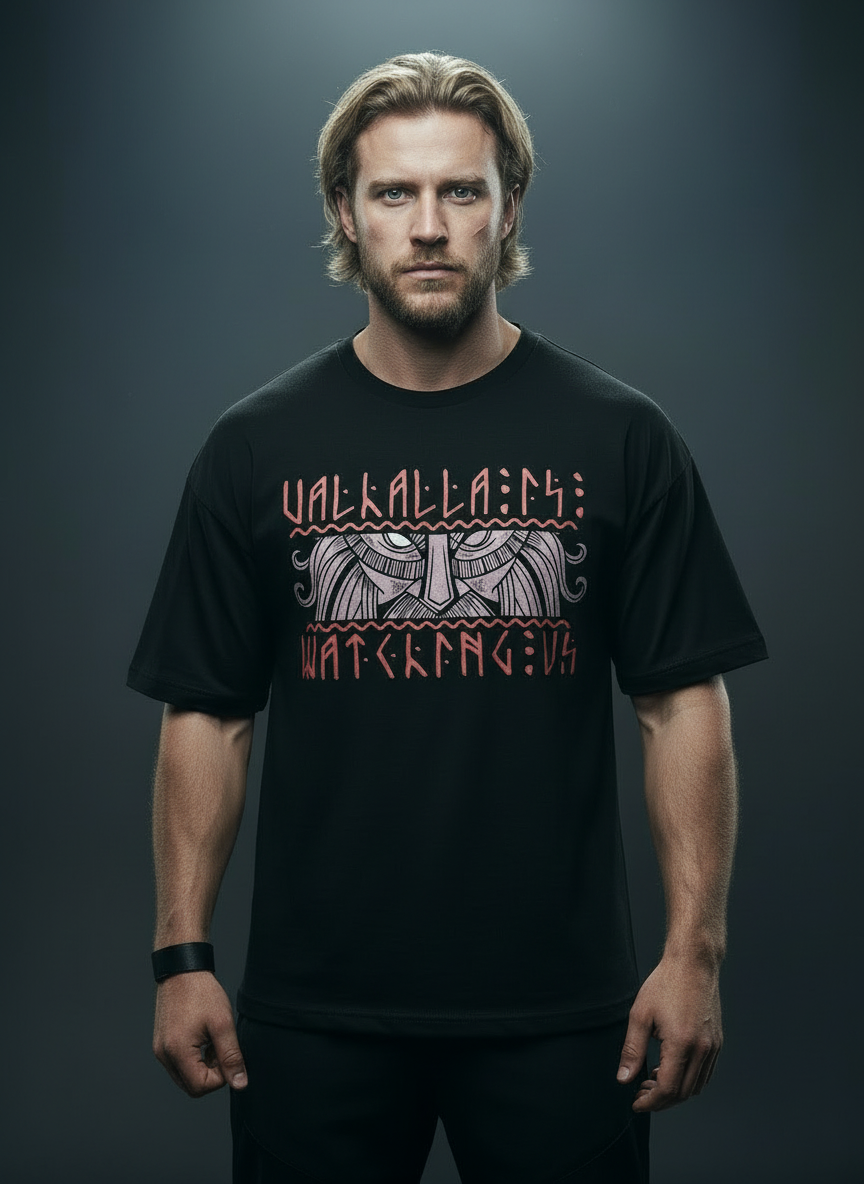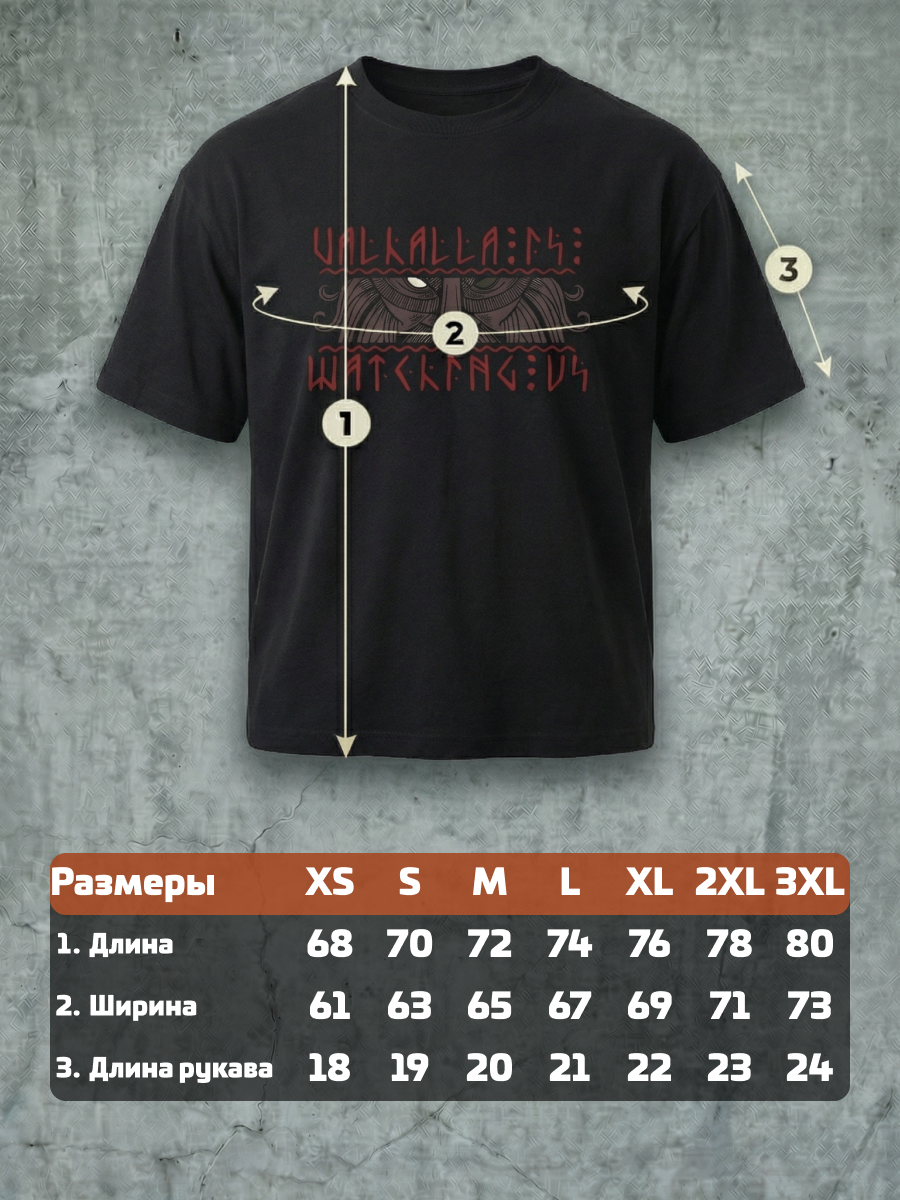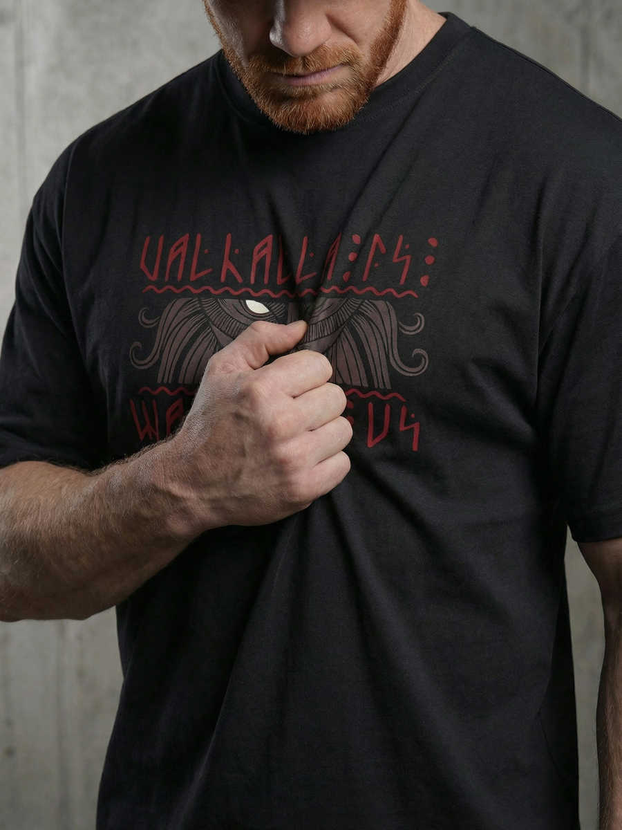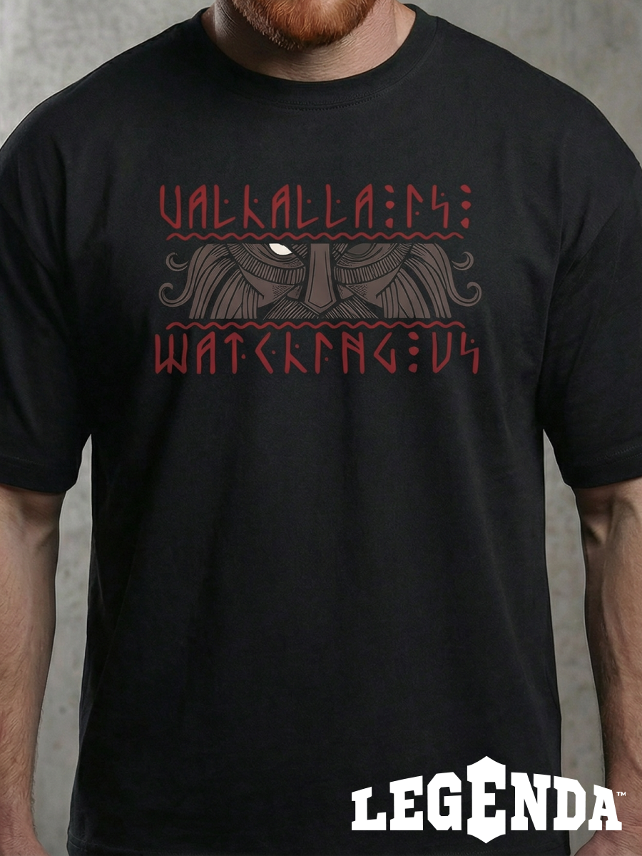 Футболка LEGENDA “Valhalla Watching Us” — дань силе варягов, мореплавателей и воинов, которые несли честь и стойкость сквозь бурные воды и битвы.