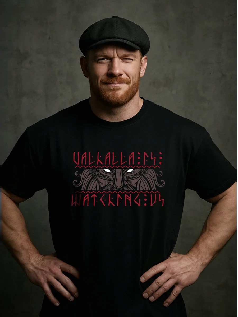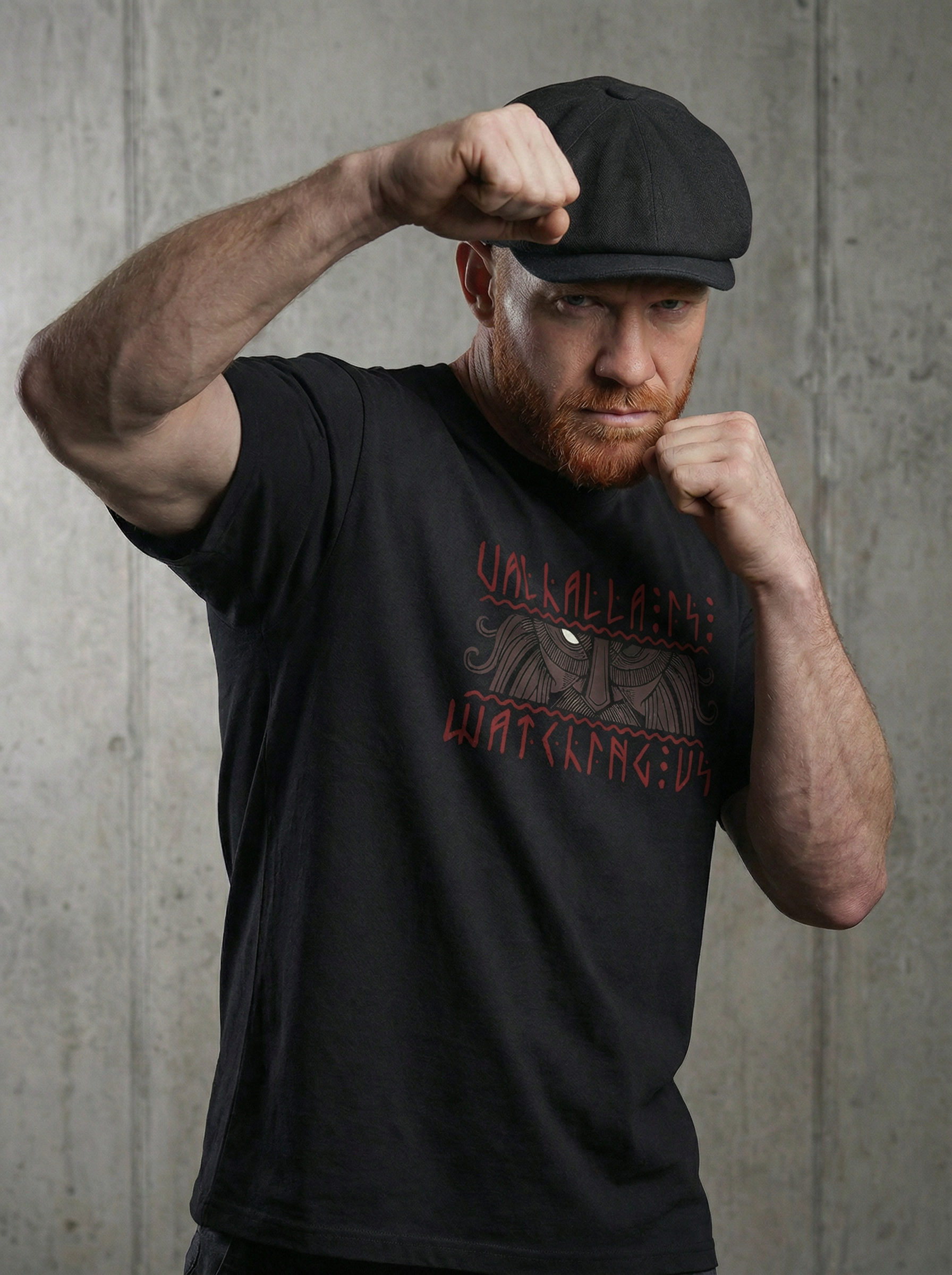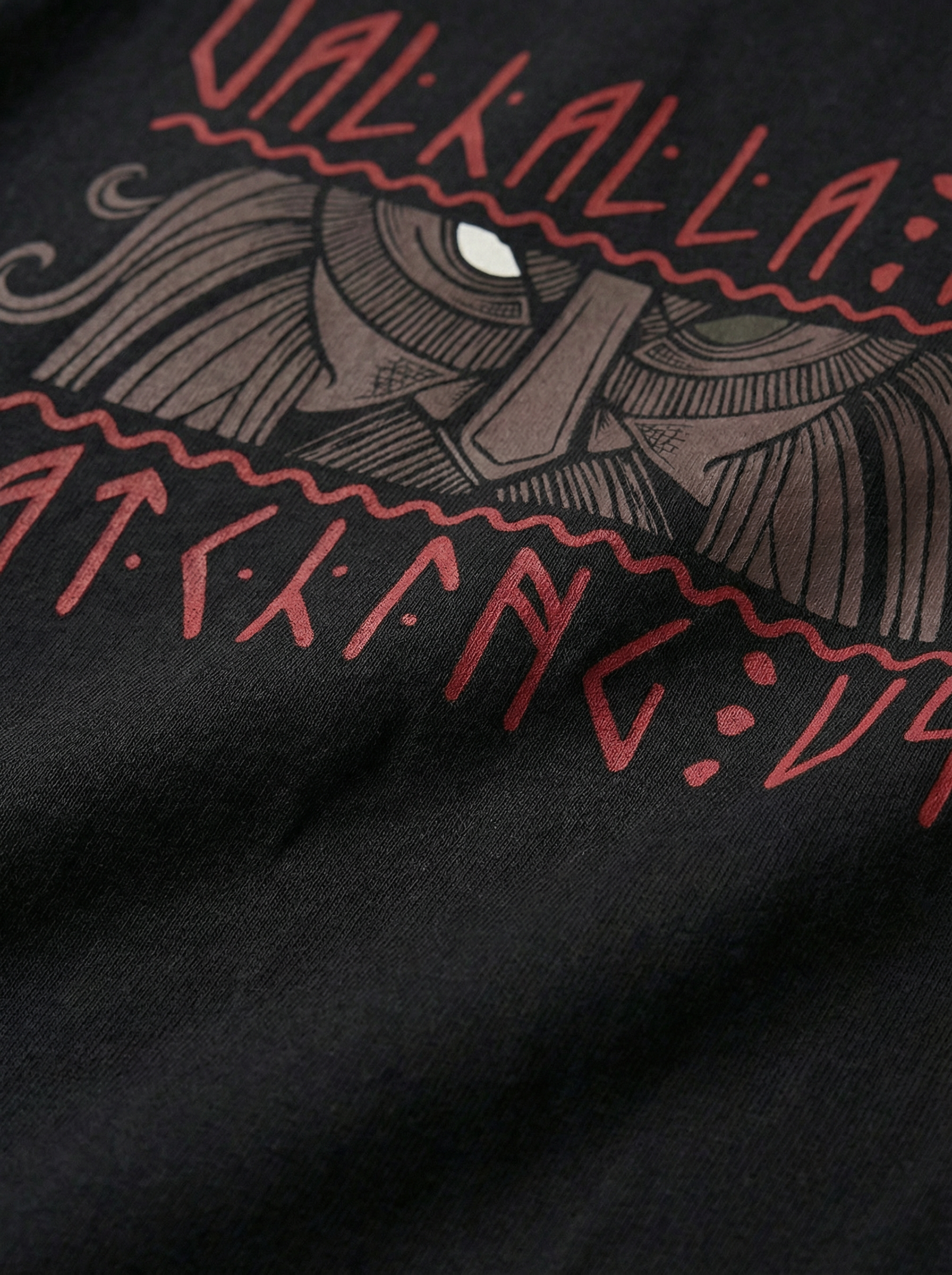 Футболка LEGENDA “Valhalla Watching Us” — дань силе варягов, мореплавателей и воинов, которые несли честь и стойкость сквозь бурные воды и битвы.