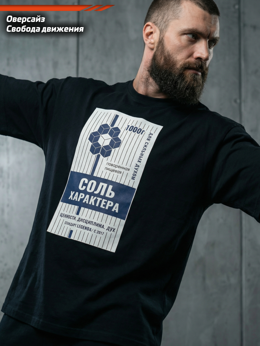 Футболка оверсайз хлопковая черная Legenda Соль характера