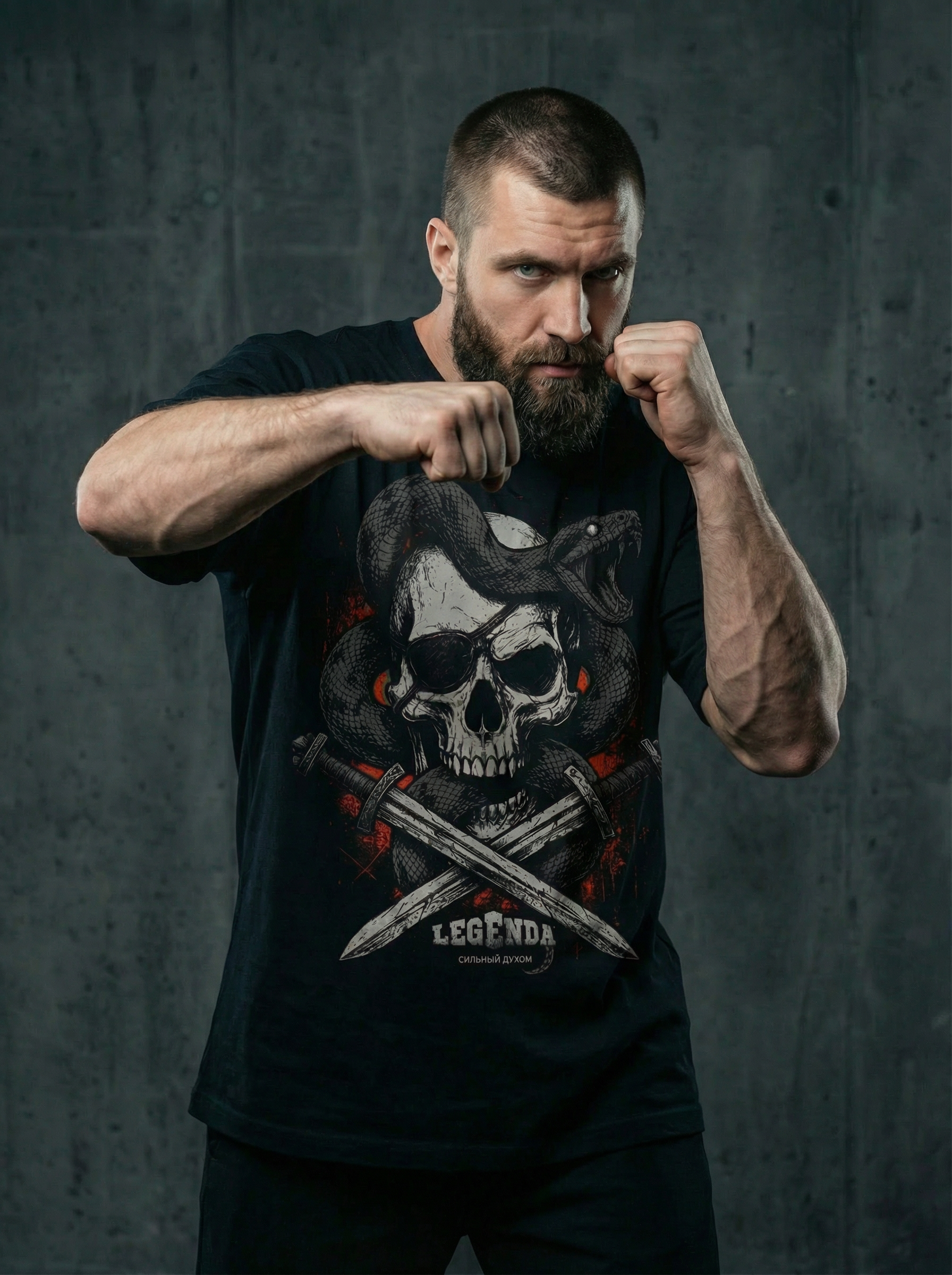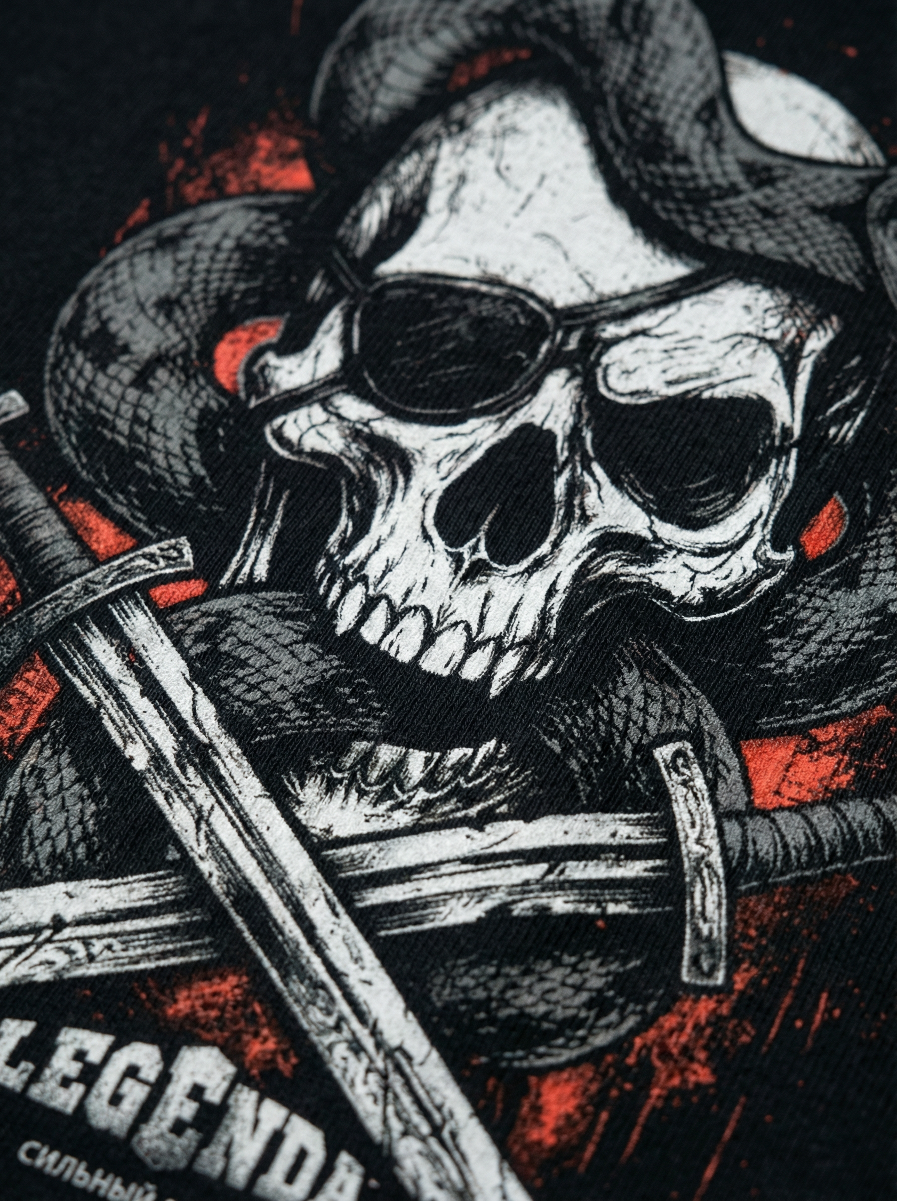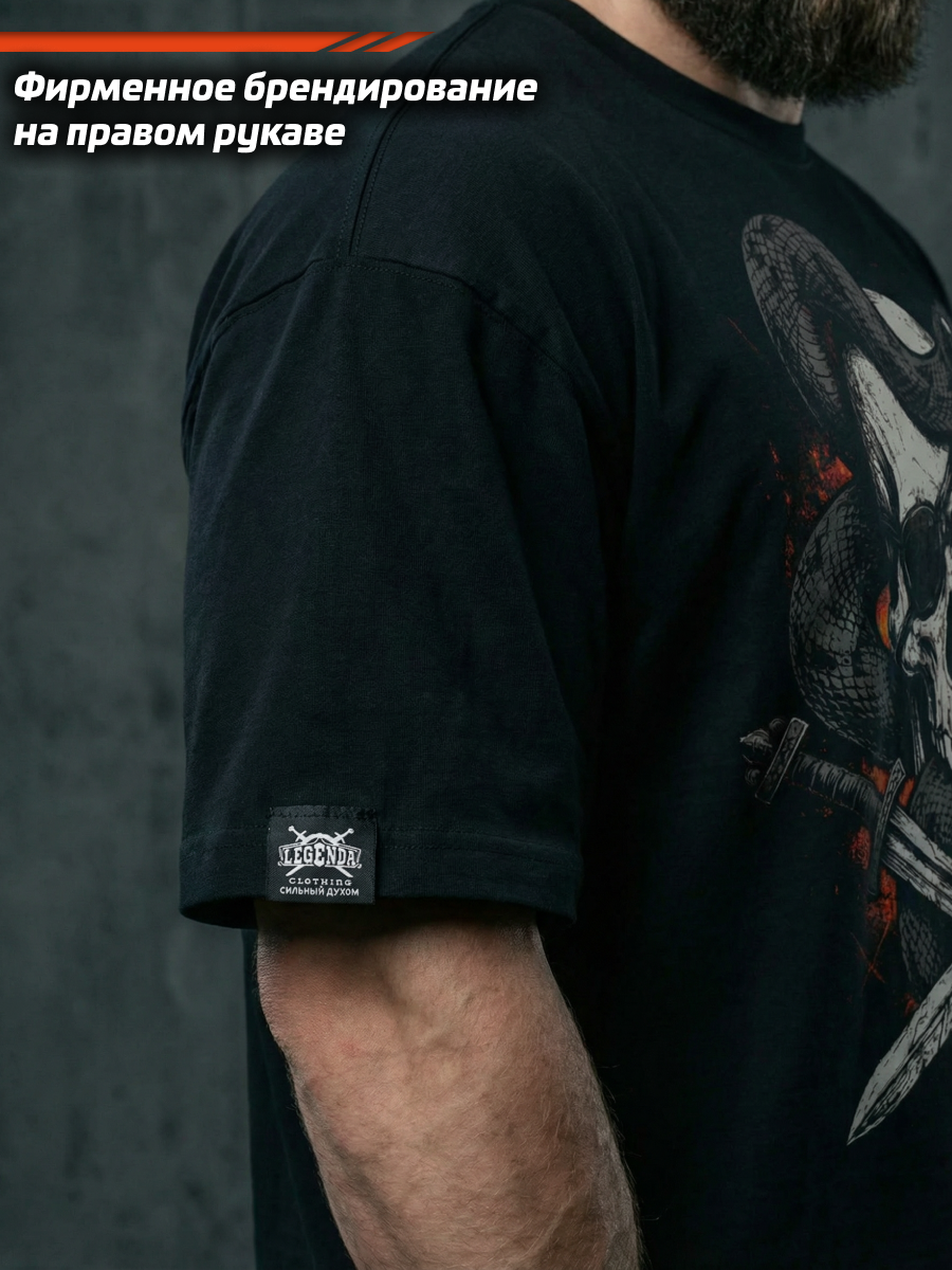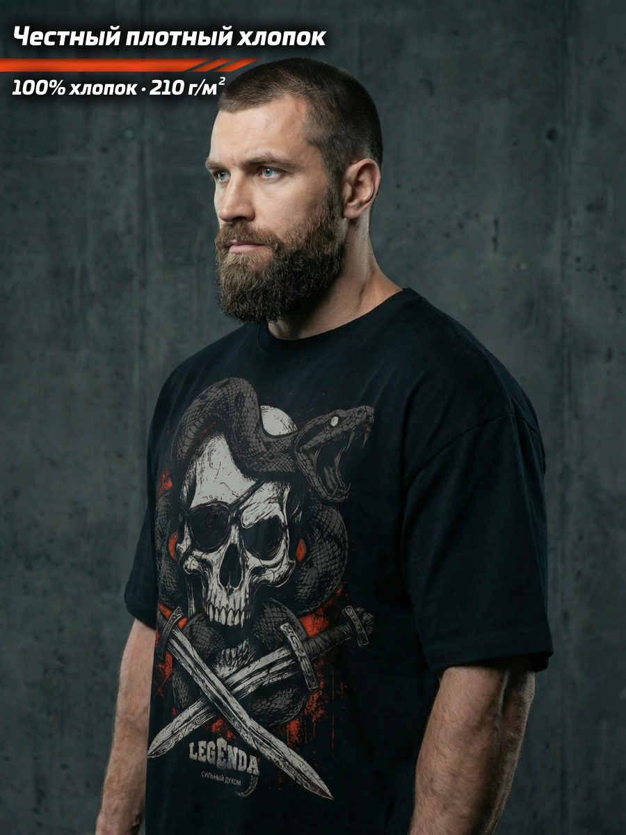Футболка оверсайз хлопковая черная LEGENDA Череп темно-серый