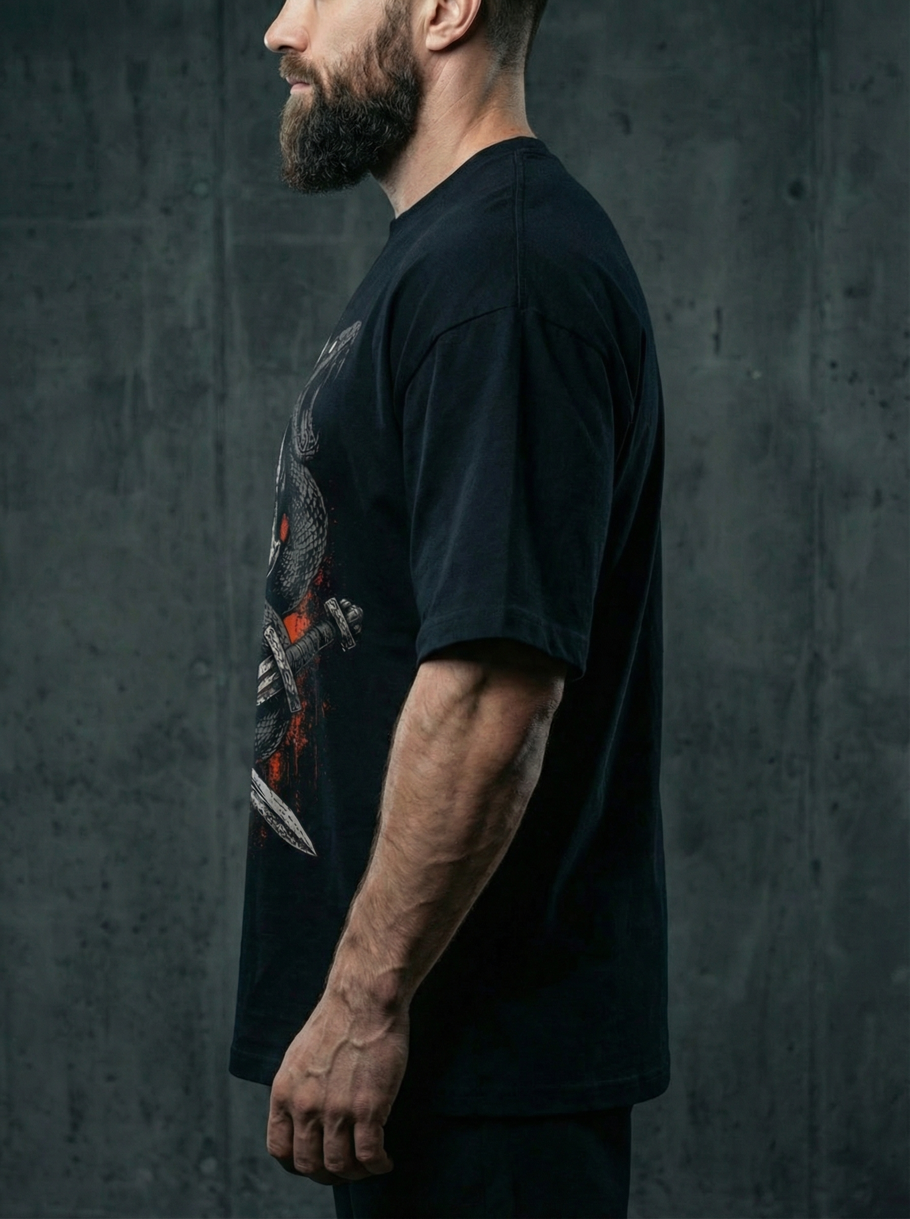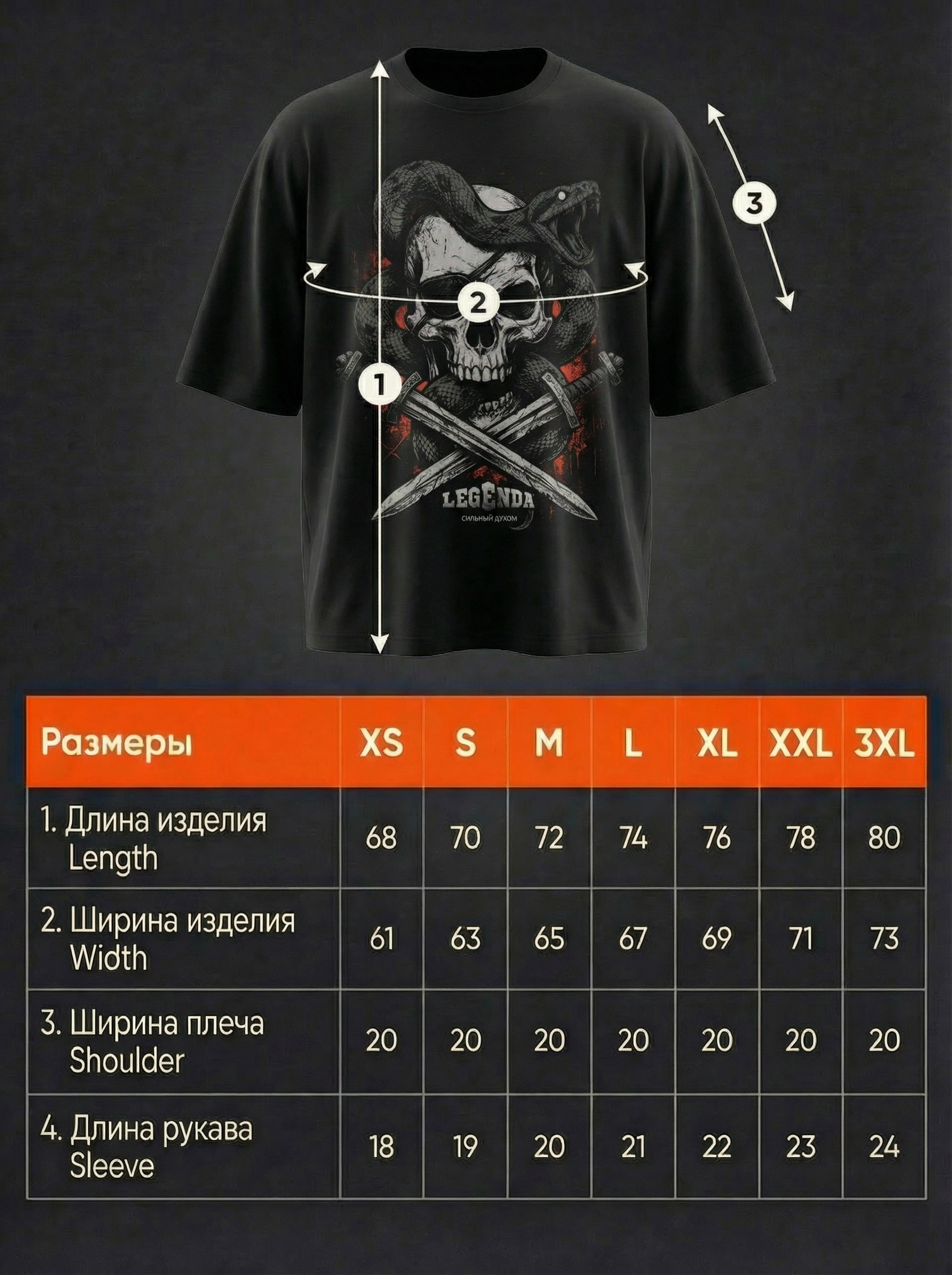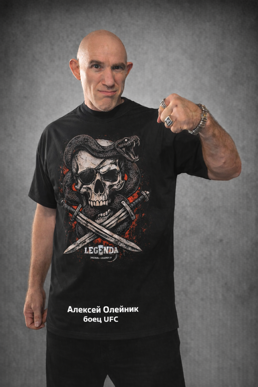 Футболка оверсайз хлопковая черная LEGENDA Череп темно-серый