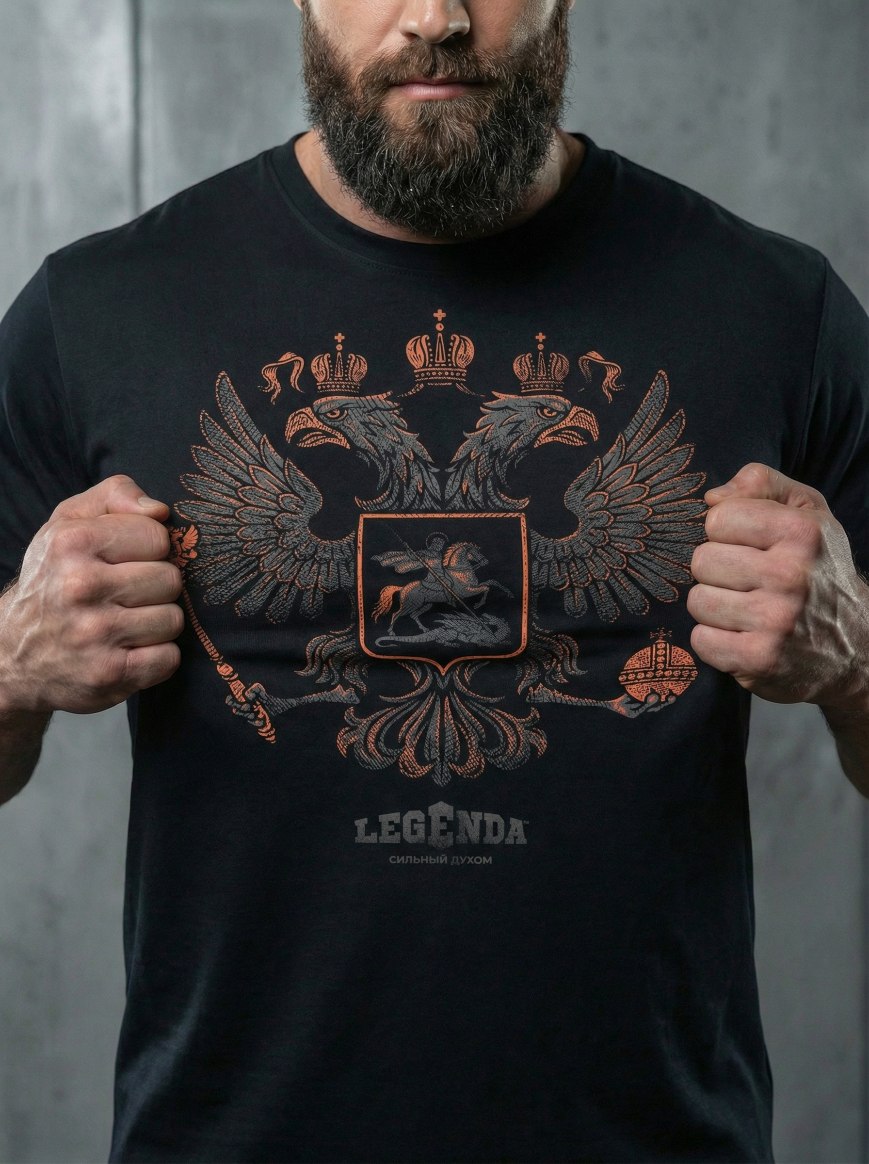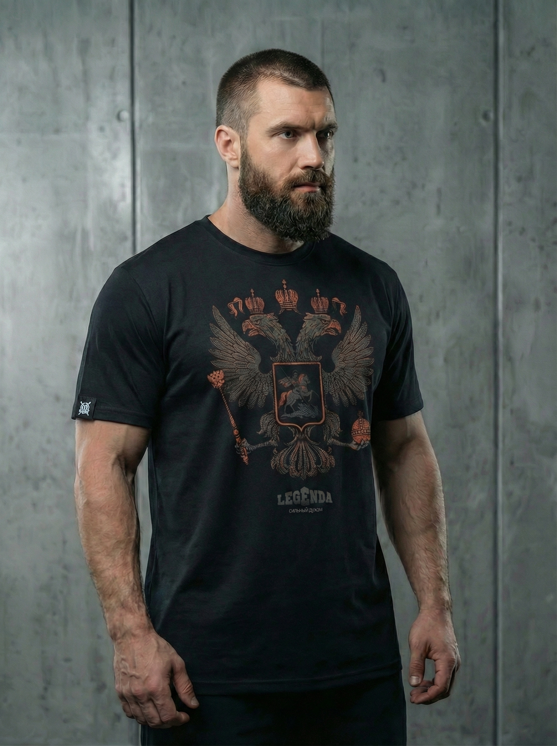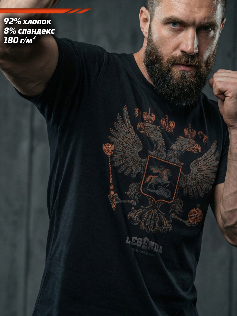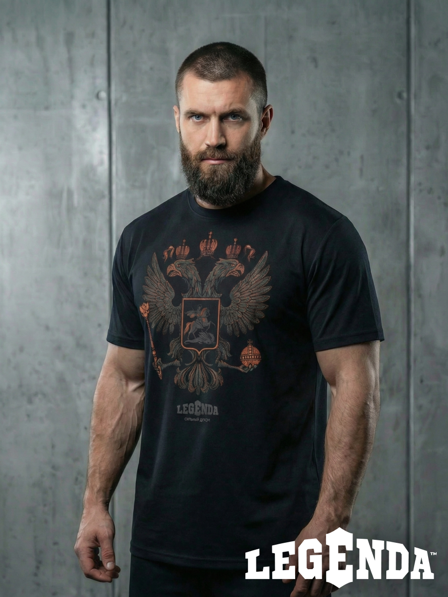 Футболка спортивная хлопковая мужская черная LEGENDA Герб