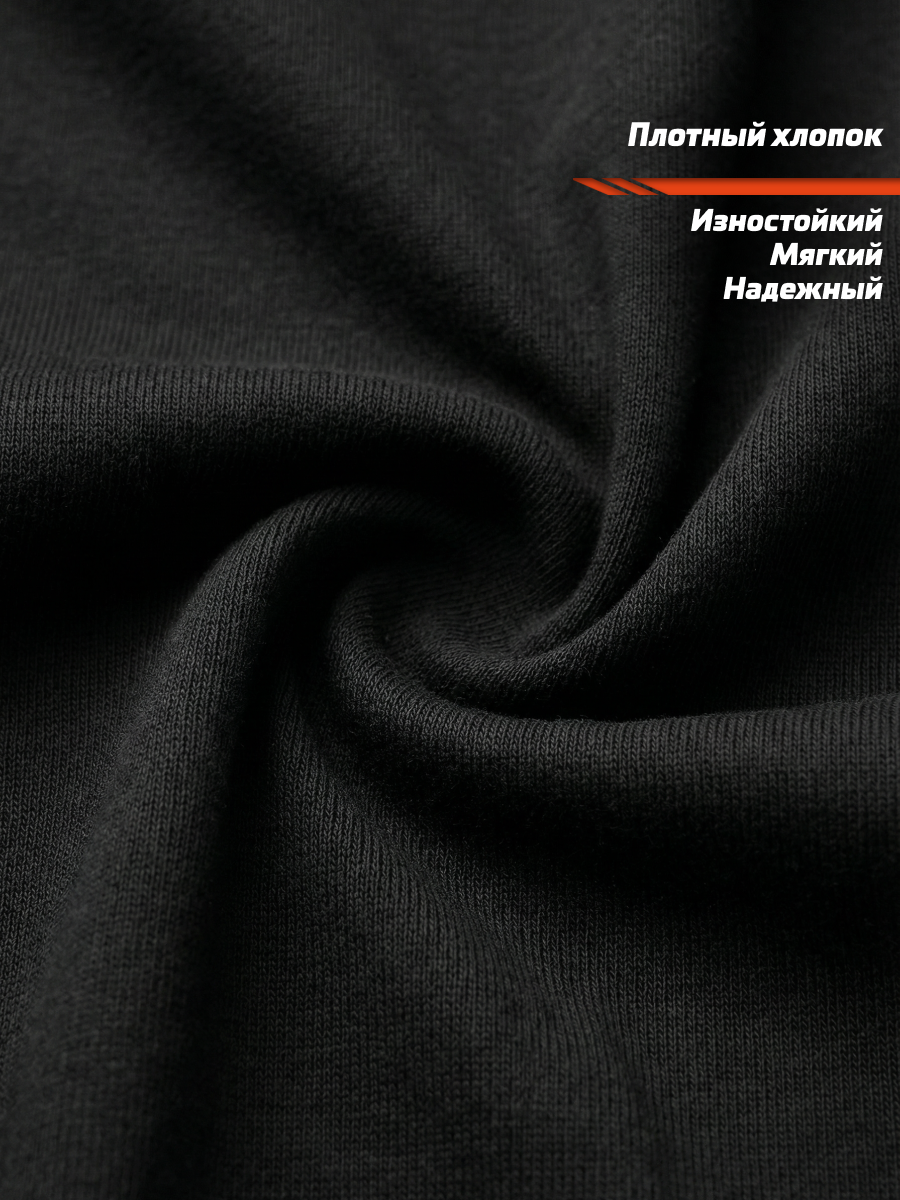 Материал футболки — 92% хлопок 8% спандекс, плотность 180г/м2: ткань плотная, долговечная, устойчивая к износу, при этом мягкая и комфортная.