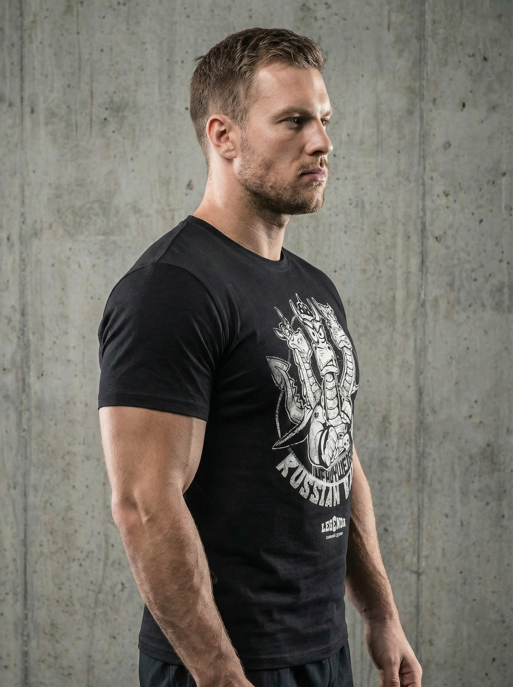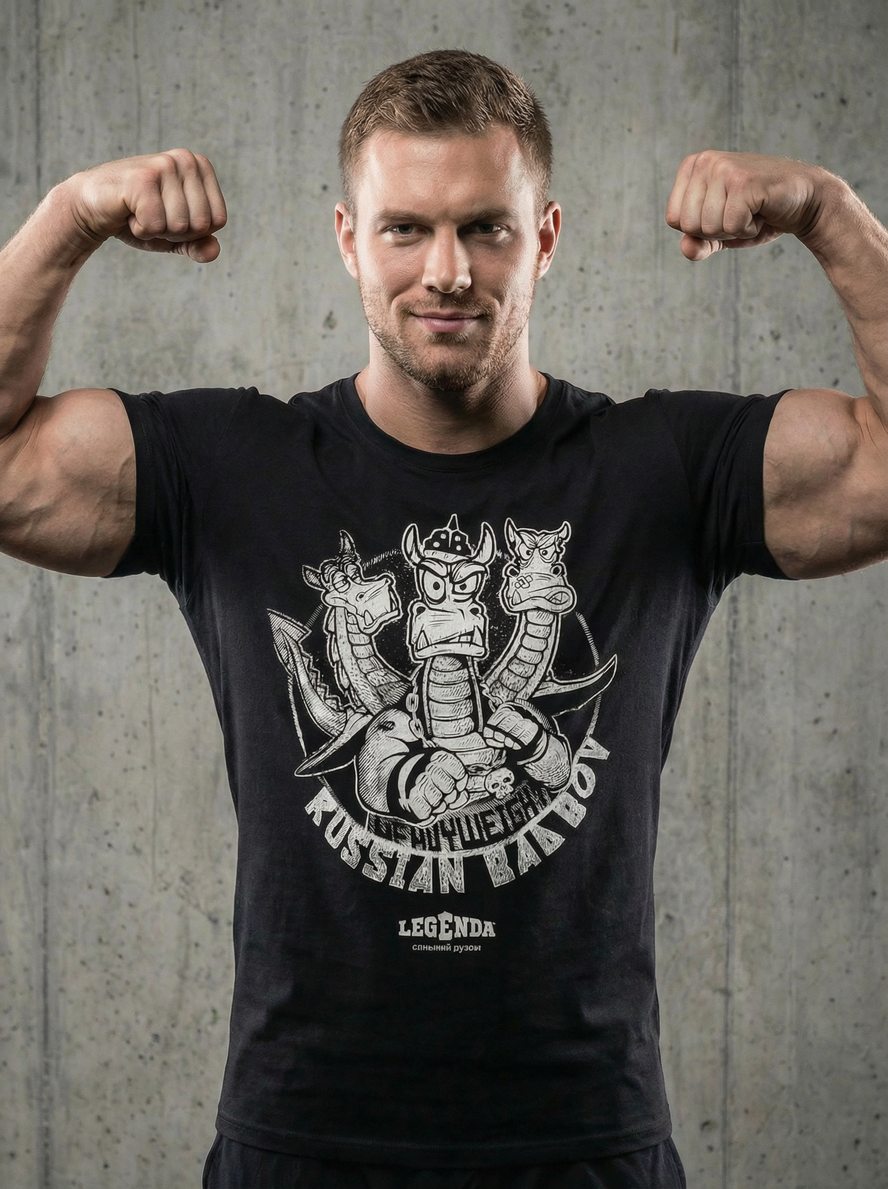 Футболка LEGENDA “Russian Bad Boy” — дерзкий образ, вдохновлённый русским фольклором и духом непокорности.