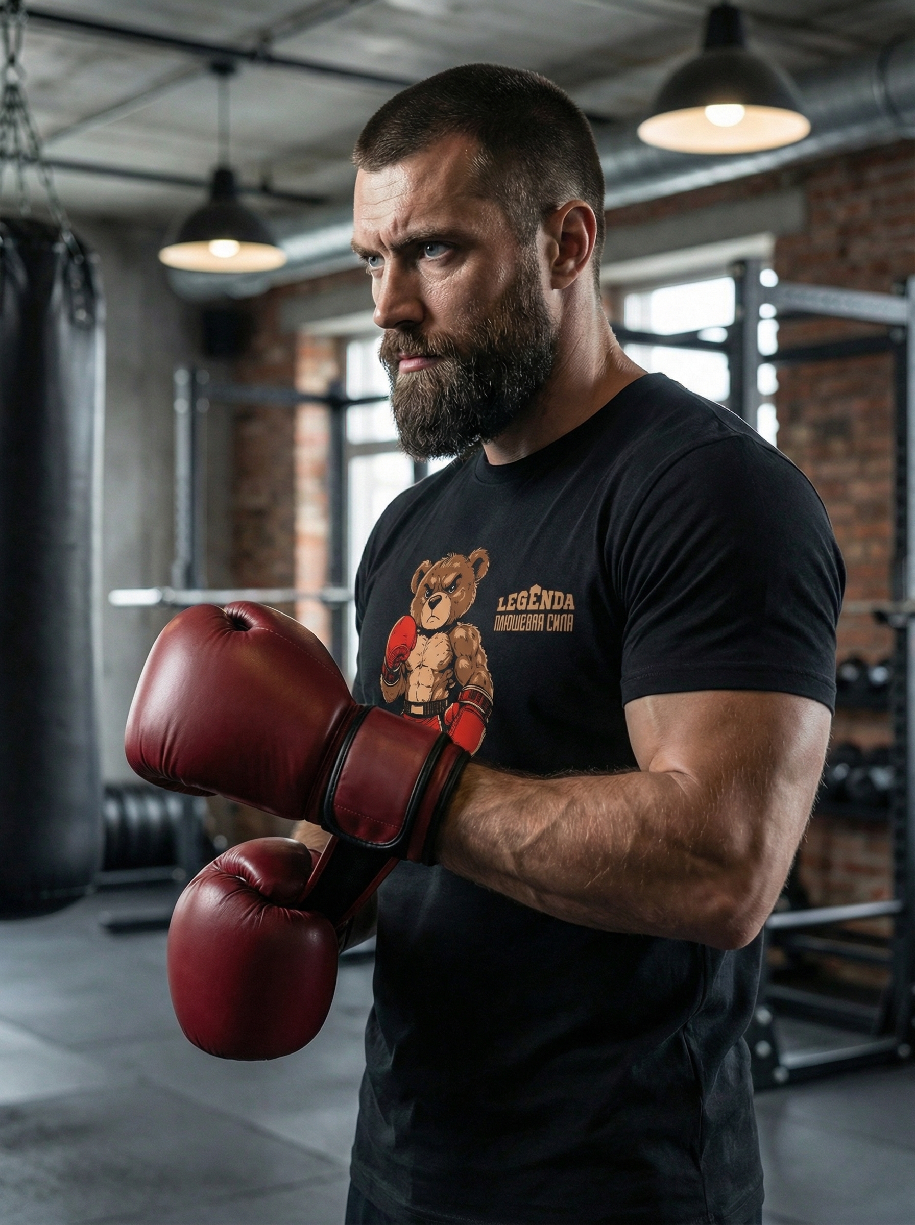 Футболка спортивная хлопковая мужская черная LEGENDA Хоккеисты красные