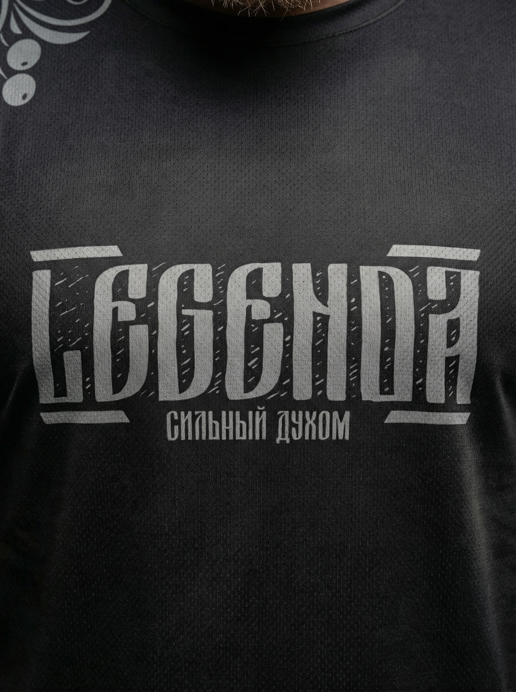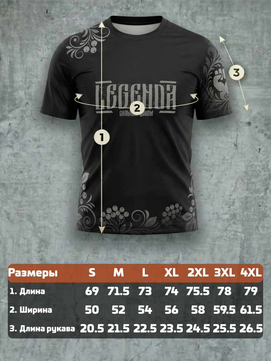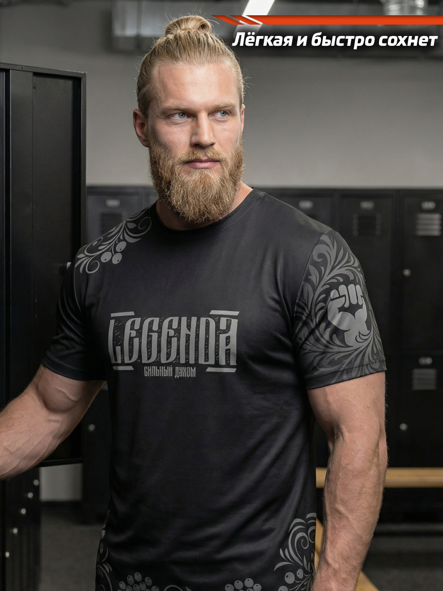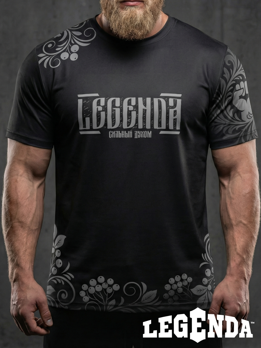Футболка тренировочная мужская черная LEGENDA Хохлома серая