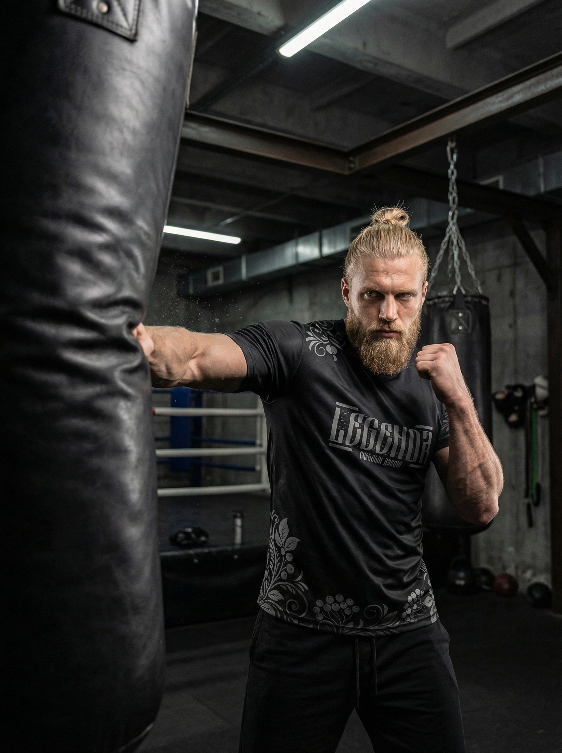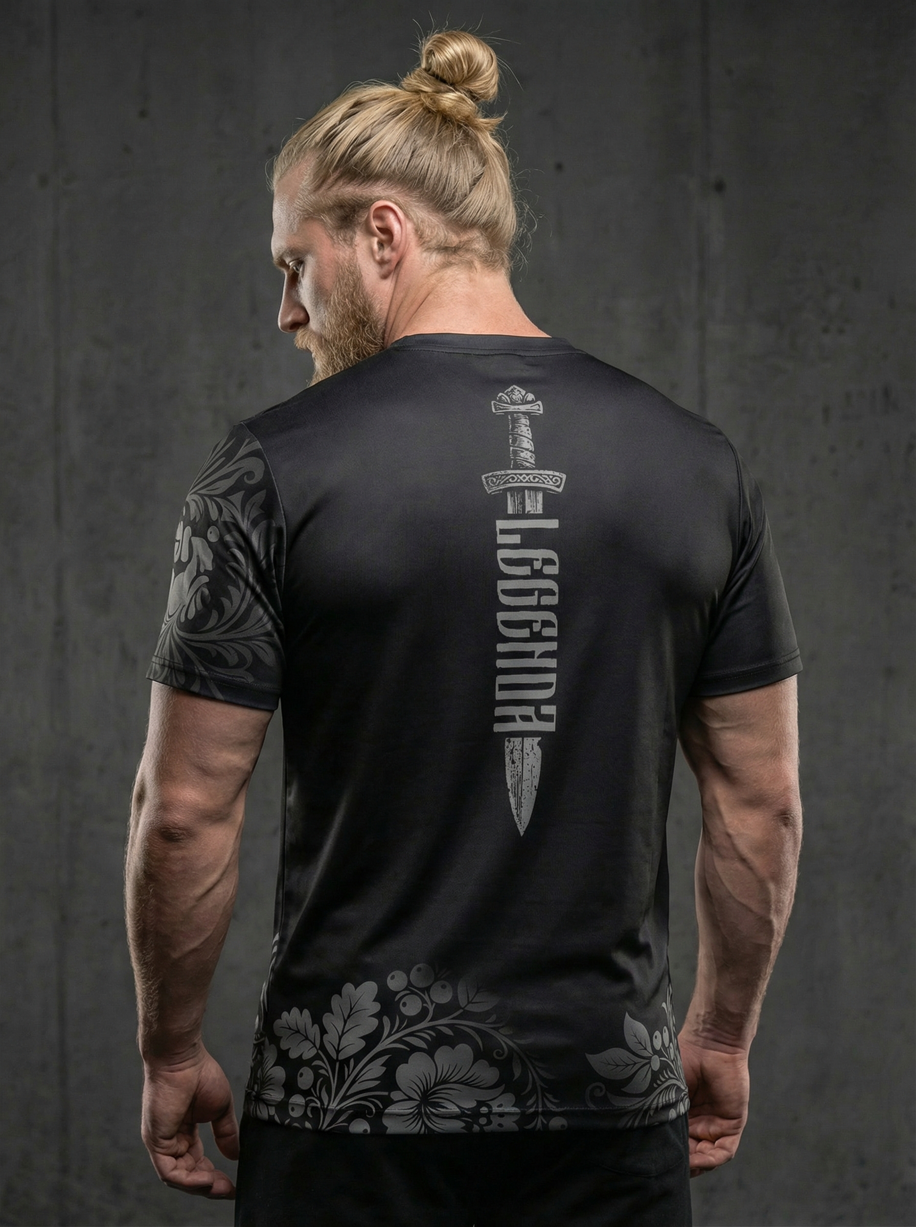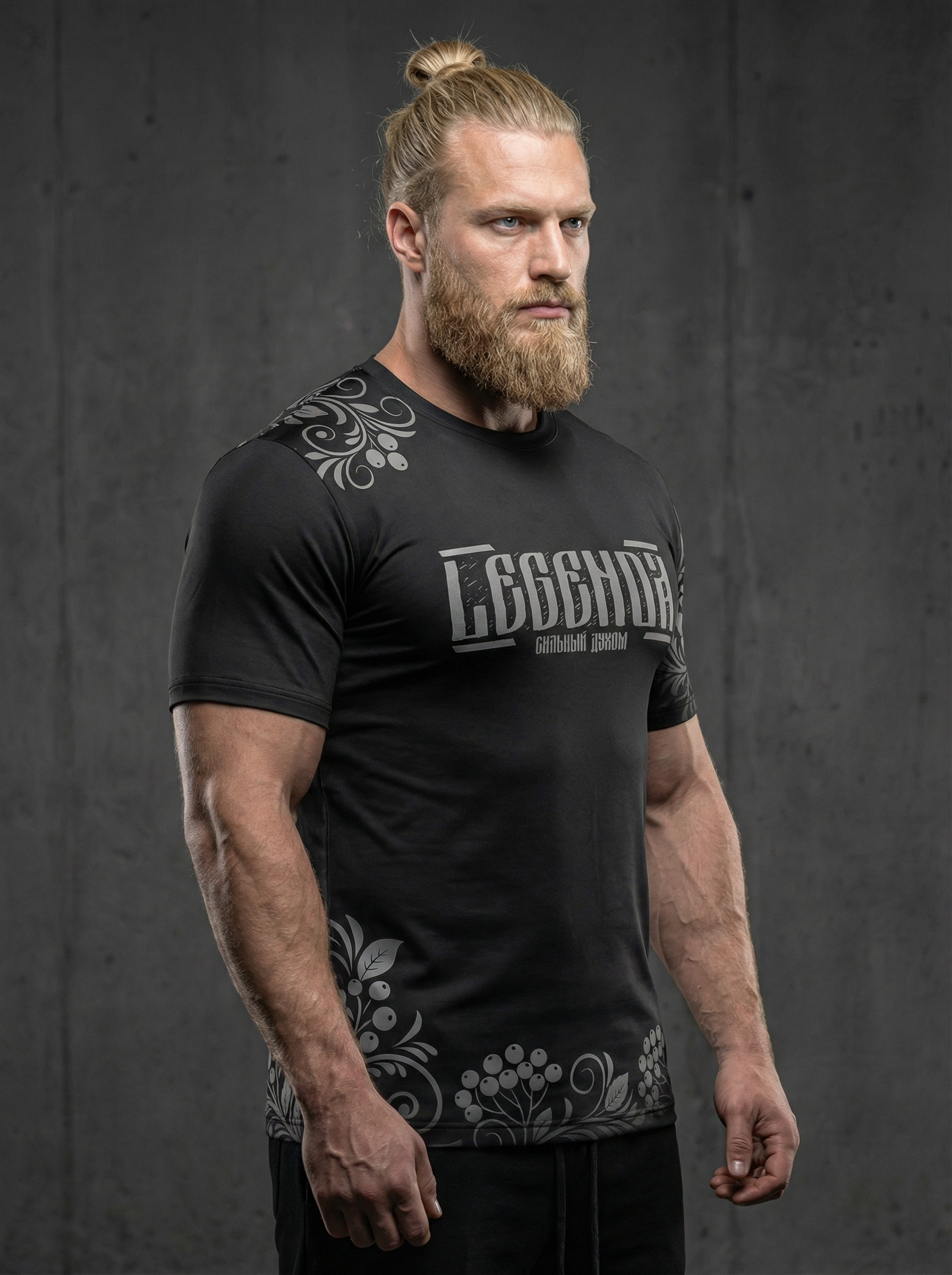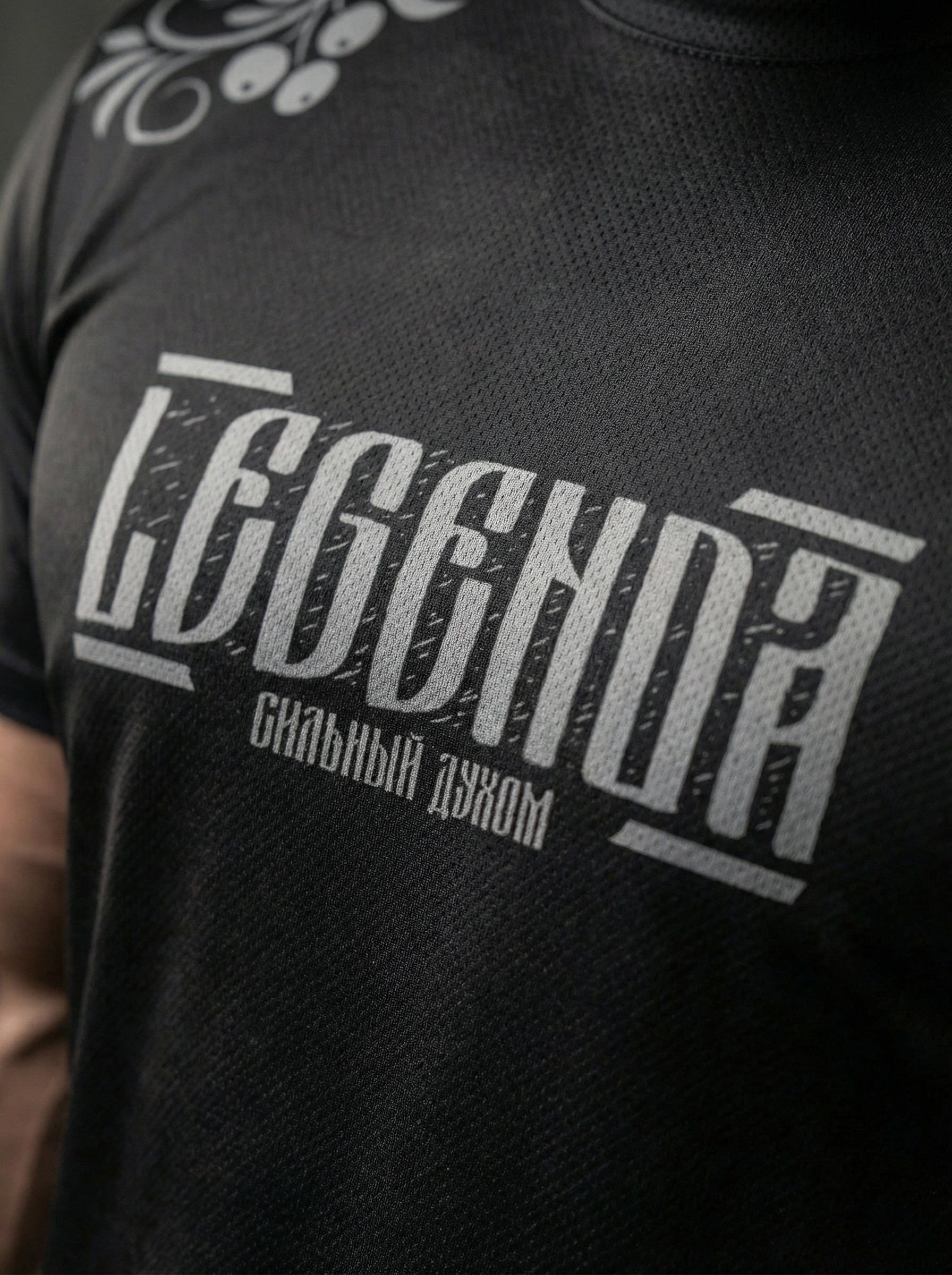 Футболка тренировочная мужская черная LEGENDA Хохлома серая
