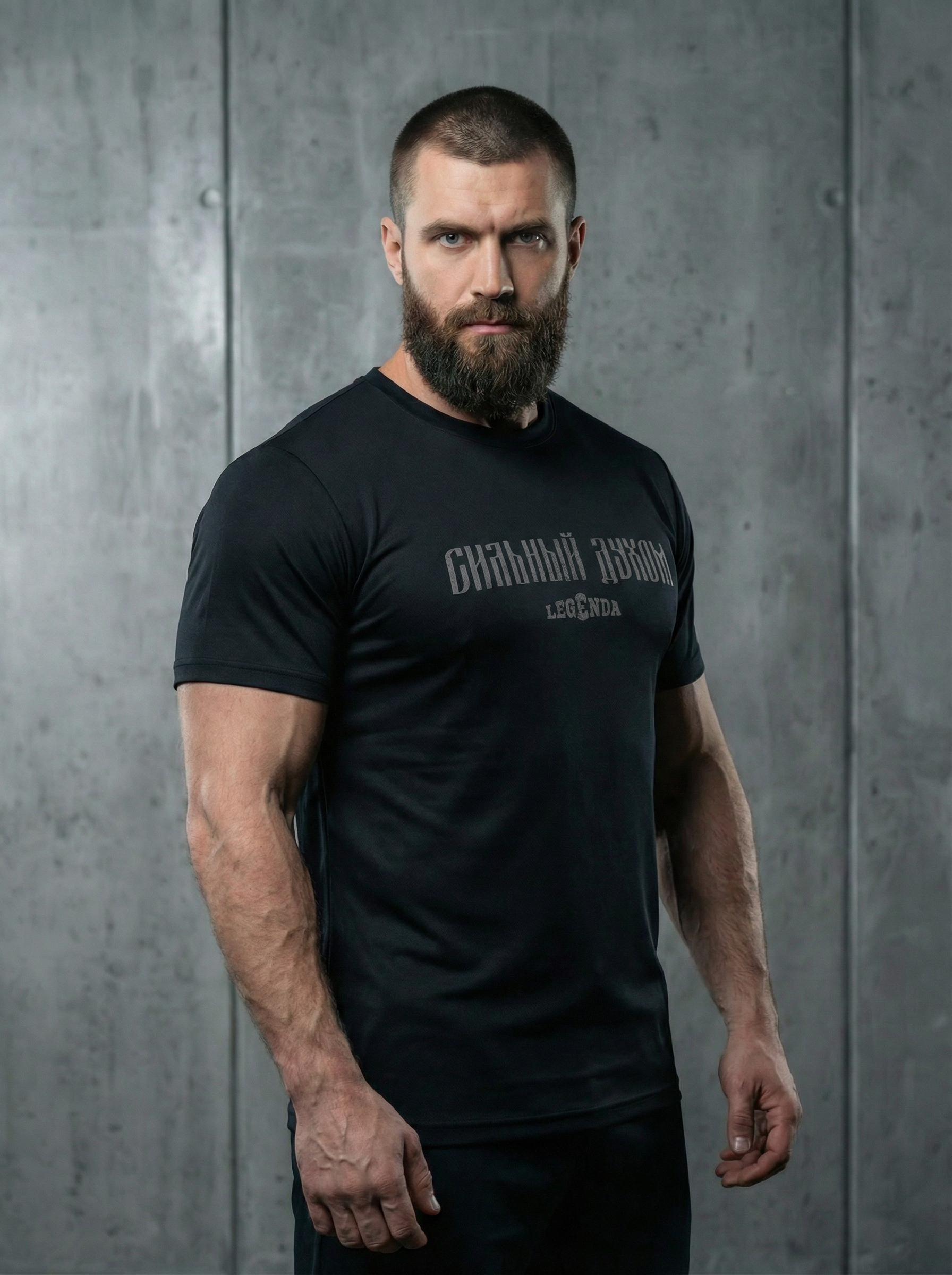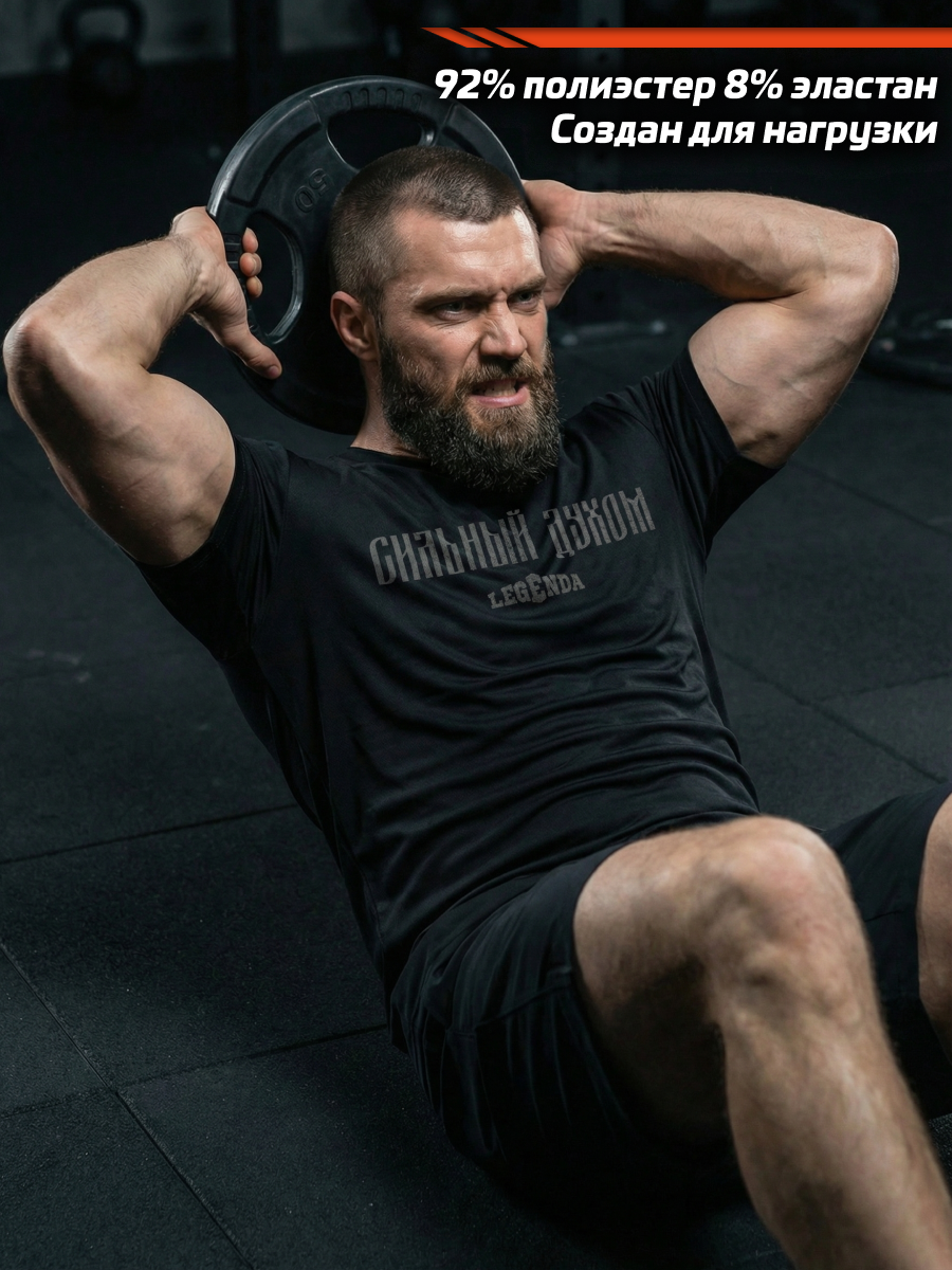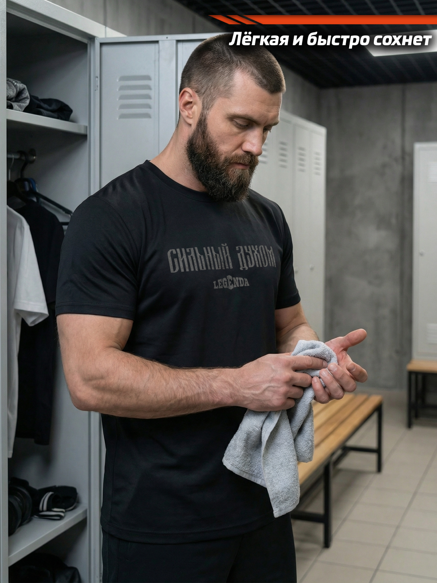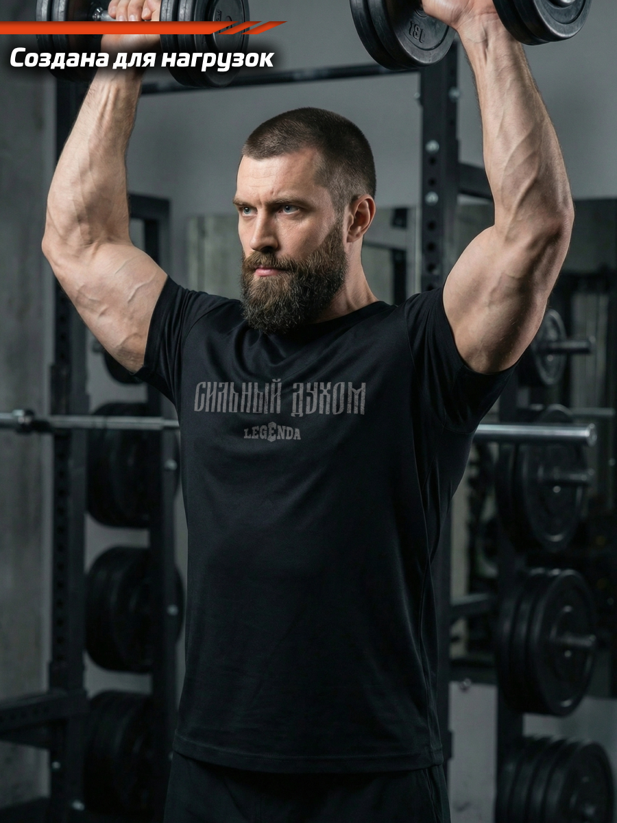 Футболка тренировочная мужская черная LEGENDA Logo Сильный духом
