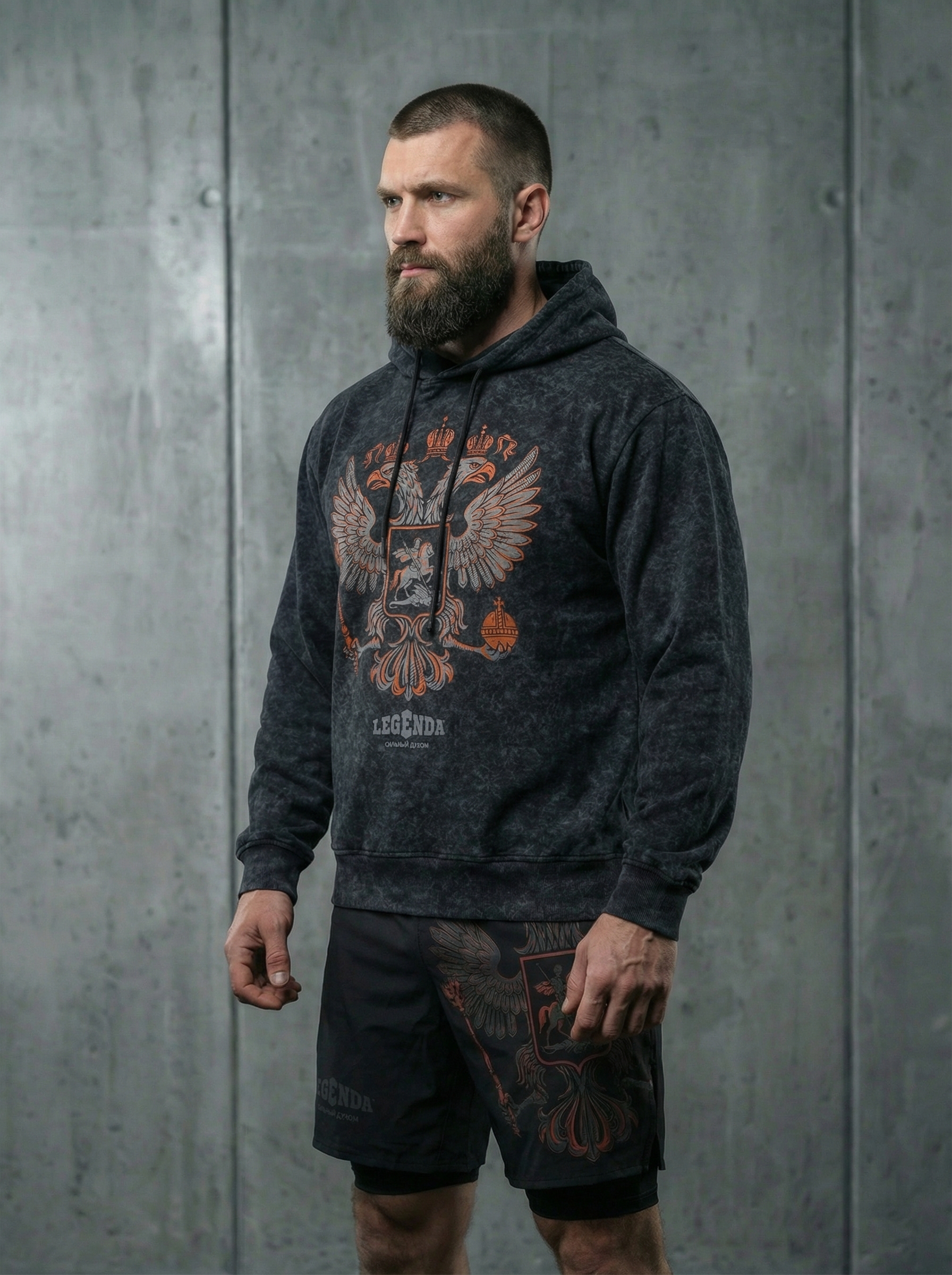 В комплект входит Шорты двойные тренировочные LEGENDA Герб черные и Толстовка демисезонная мужская LEGENDA Герб черная.