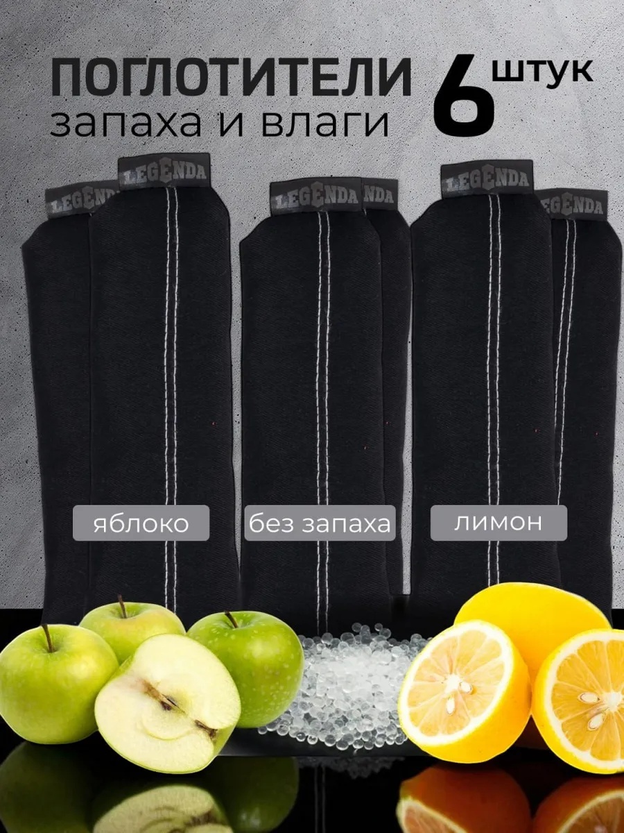 Набор поглотителей запахов и влаги Legenda для спортивной экипировки (Драйпер) из 3х пар: без запаха, лимон и яблоко - средства для поглощения влаги и запахов, изготовленное из экологически чистых материалов. Драйпер обладает ионообменными и повышенными адсорбционными свойствами. Наполнителем является специально обработанный природный минерал.