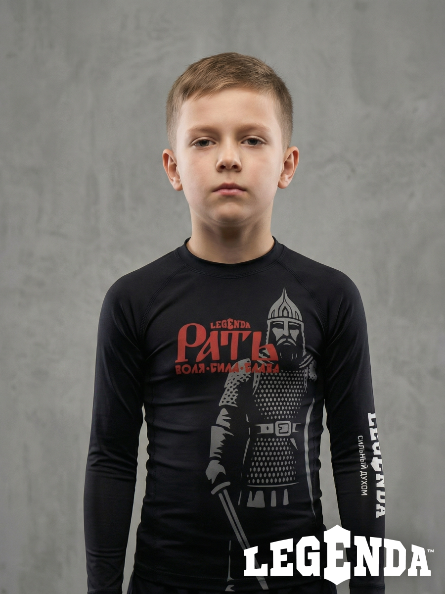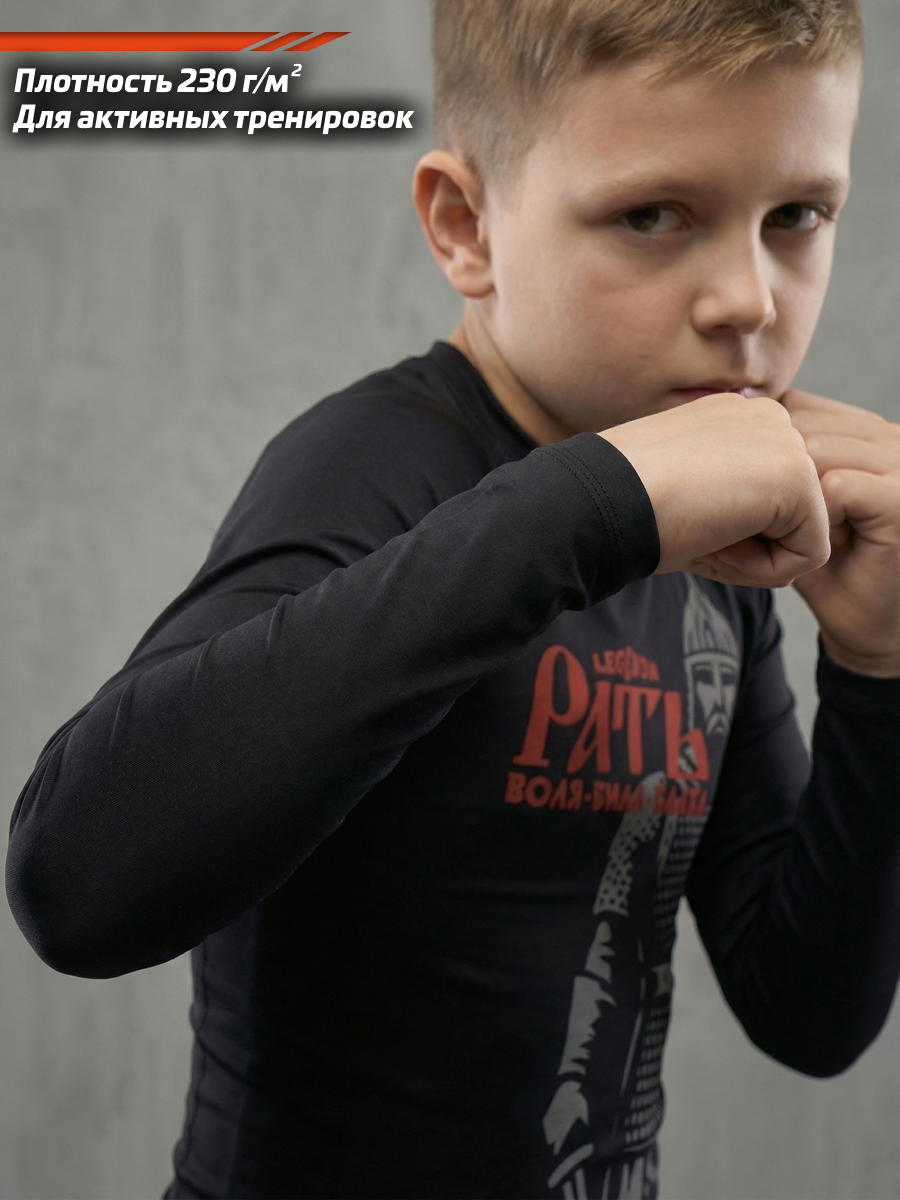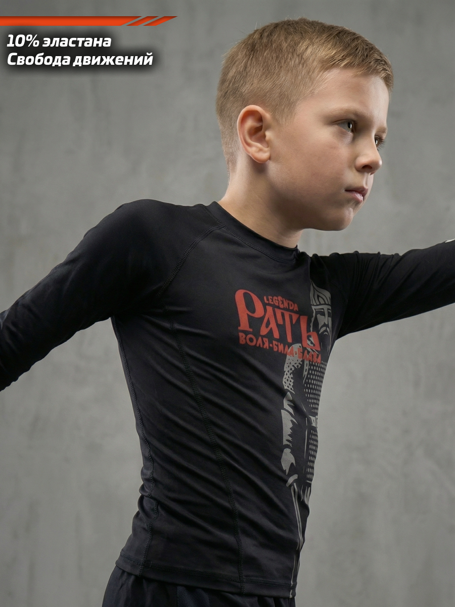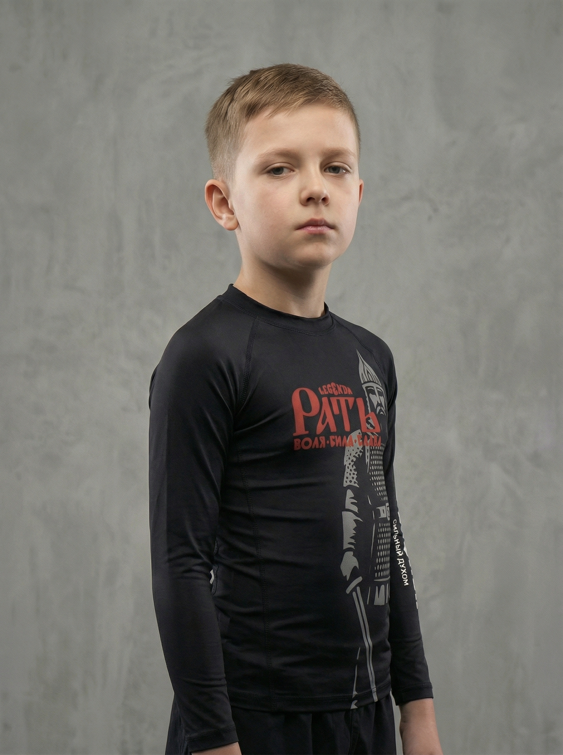 Рашгард детский черный с длинным рукавом Рать2 красная