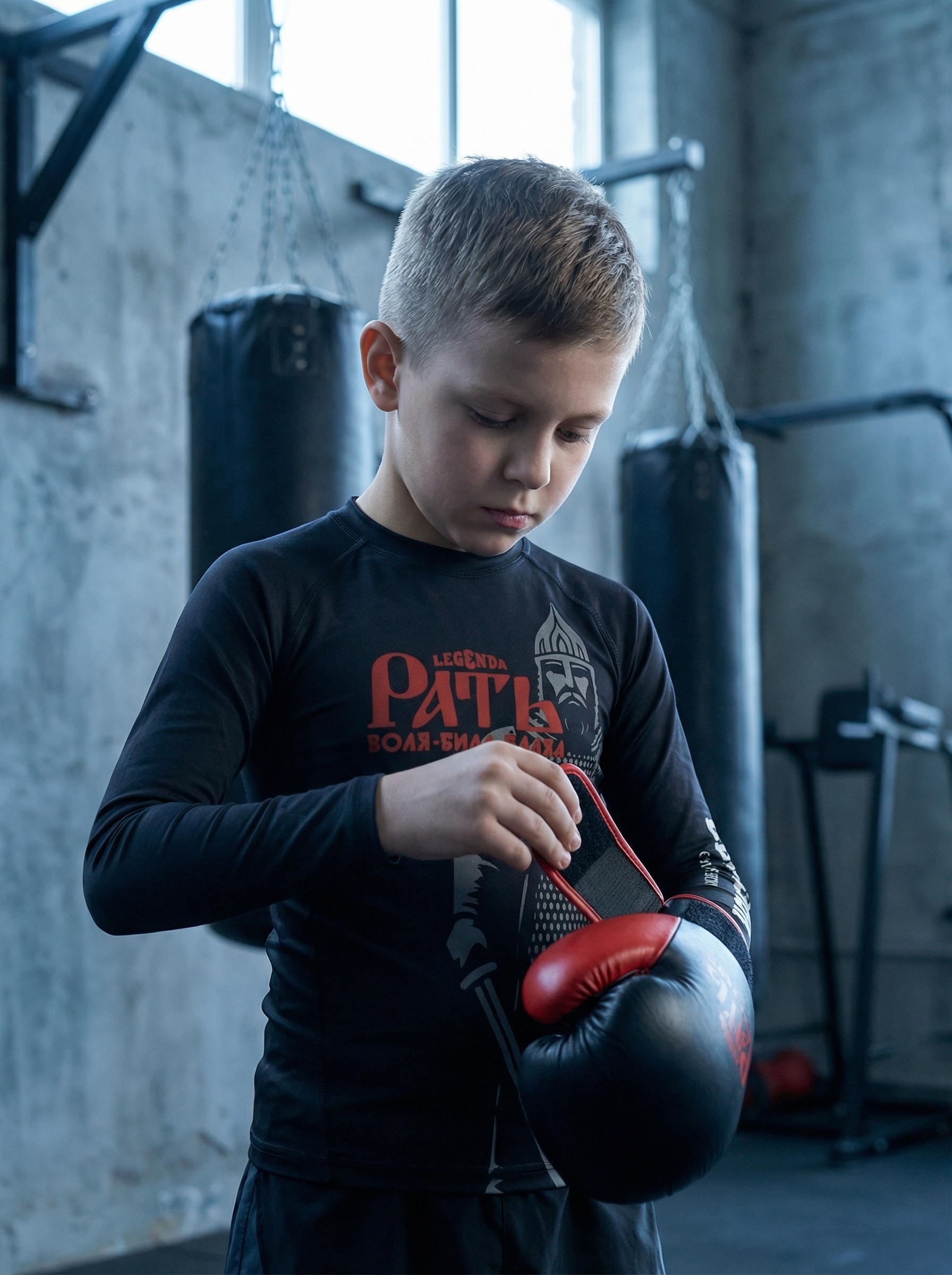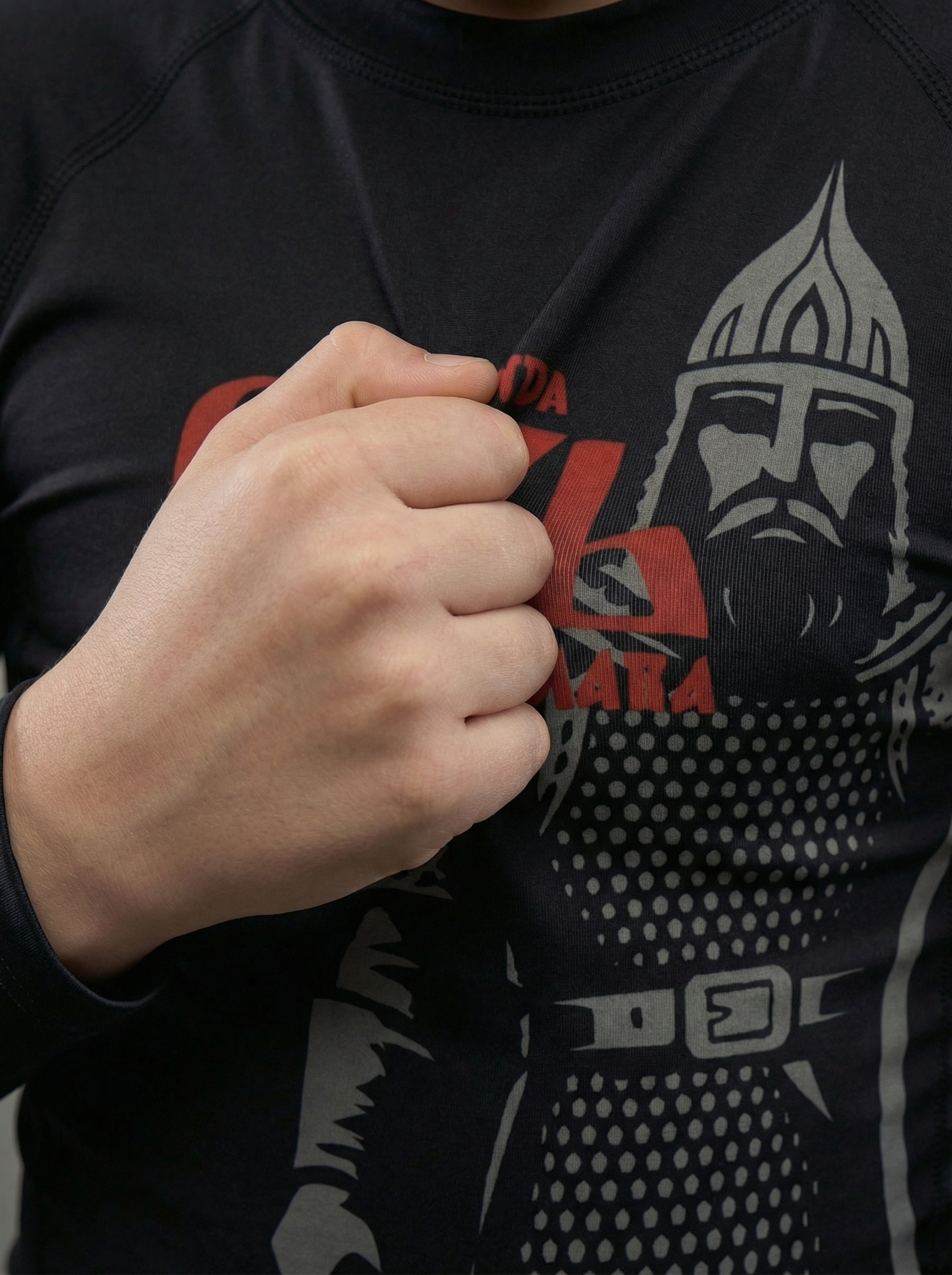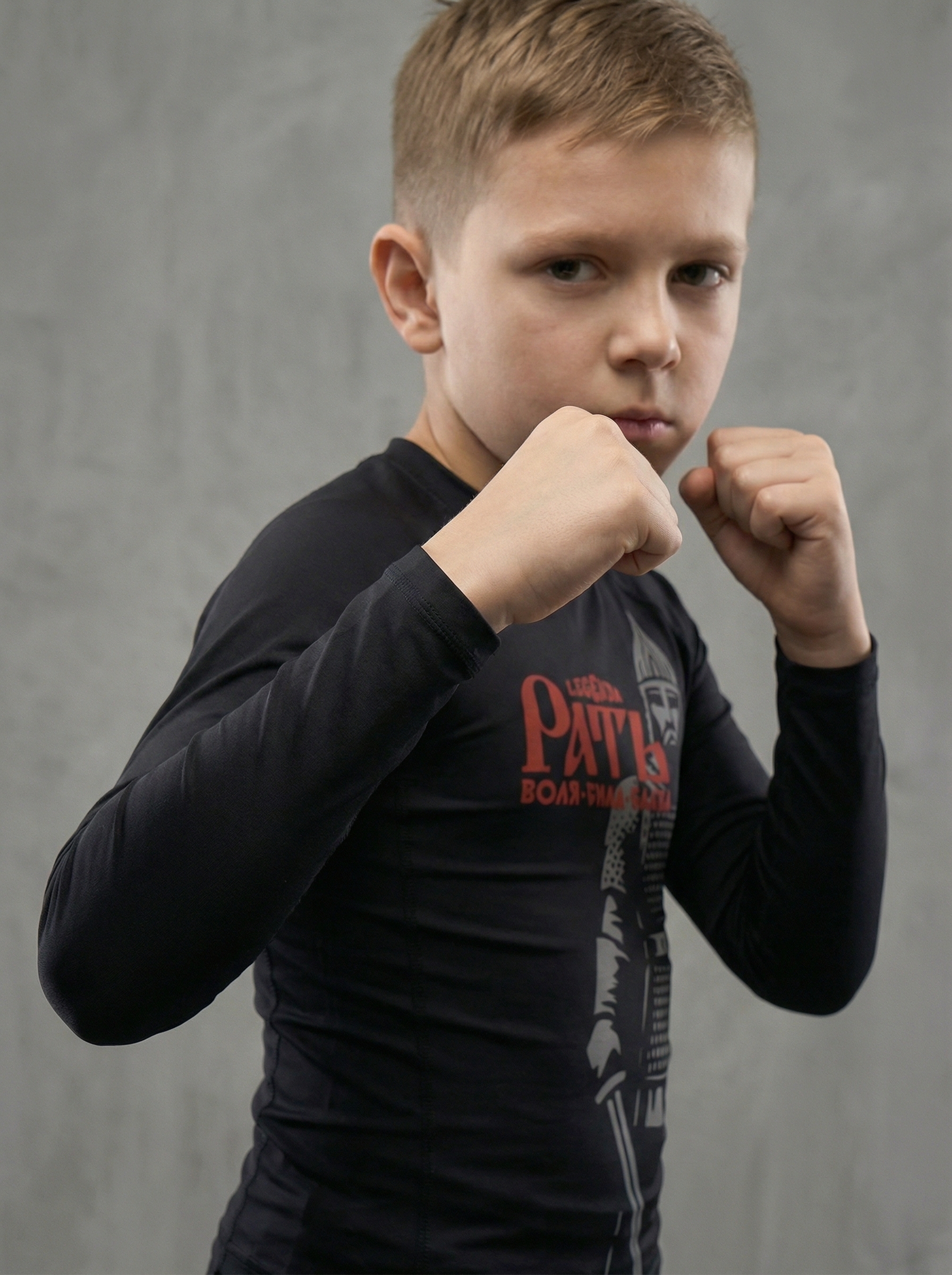 Рашгард детский черный с длинным рукавом Рать2 красная