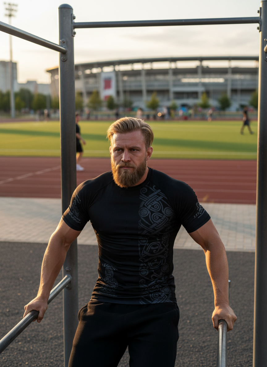 Чёрный “Варяг” словно часть боевого доспеха: надев его, ты вспоминаешь, кто ты есть. Не просто спортсмен, а воин, закалённый трудом и дисциплиной.