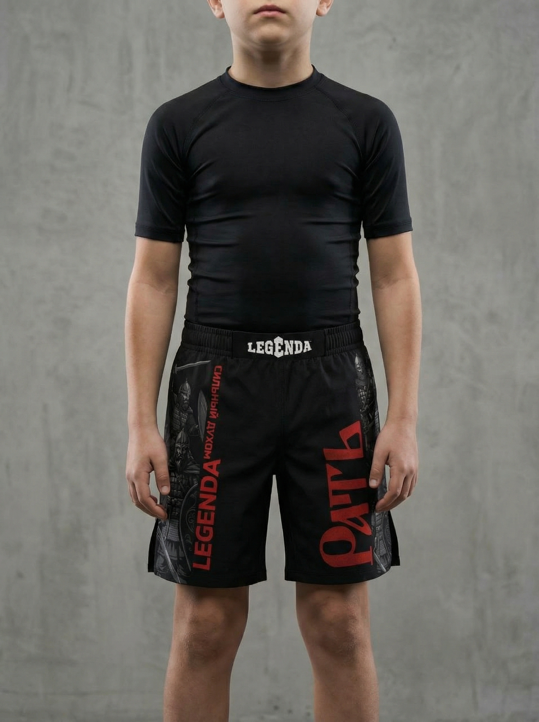 Шорты детские спортивные тренировочные черные LEGENDA Рать2 красная
