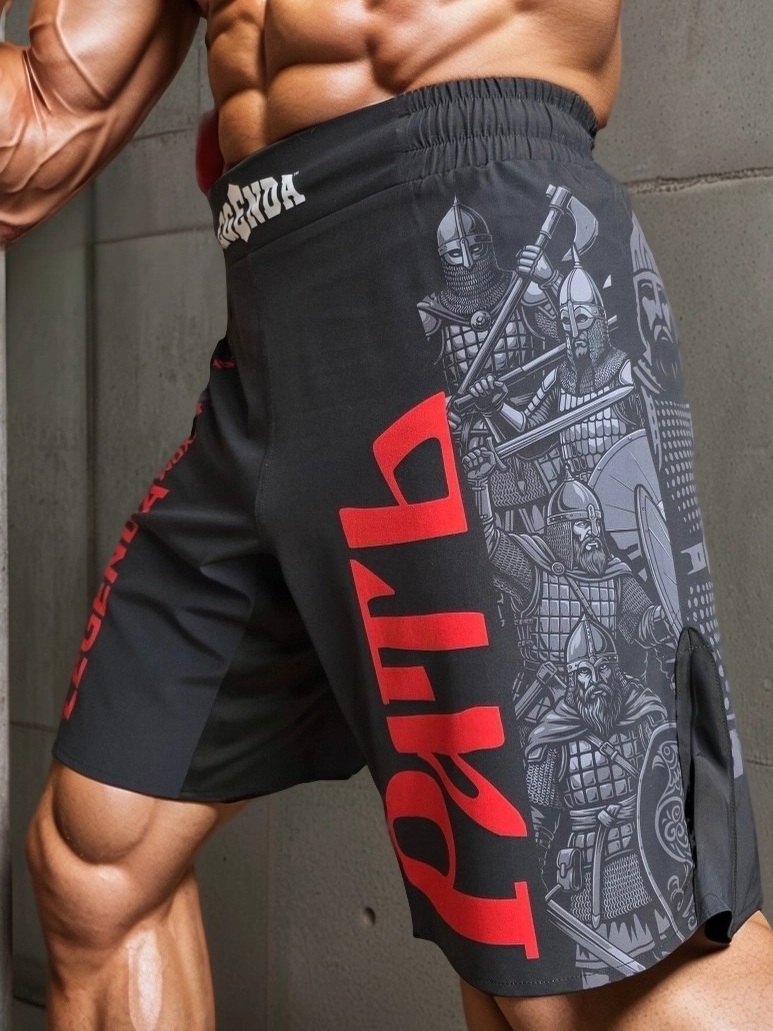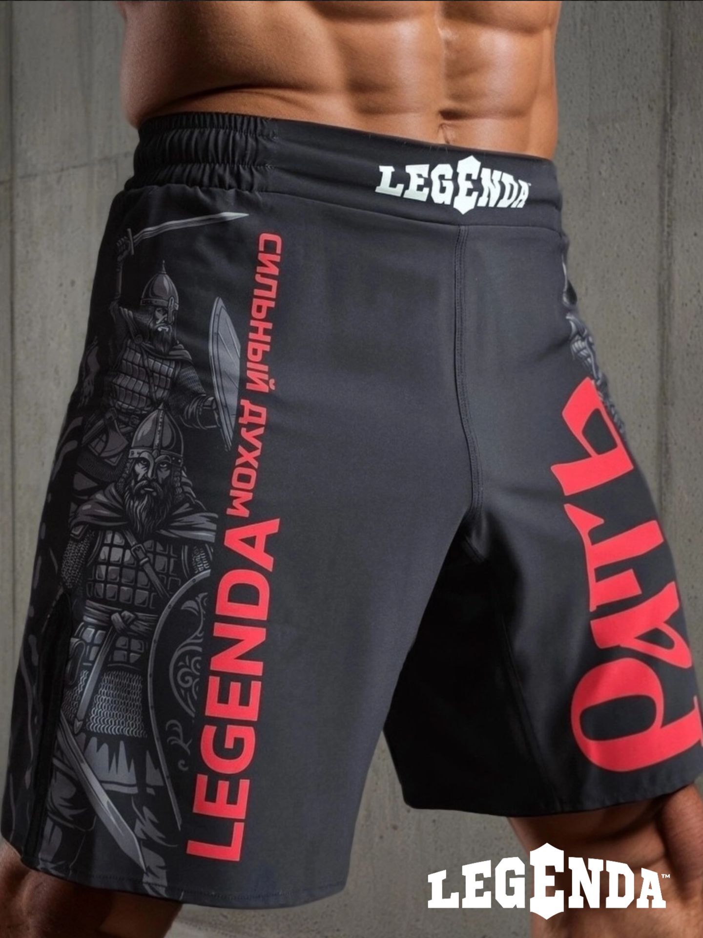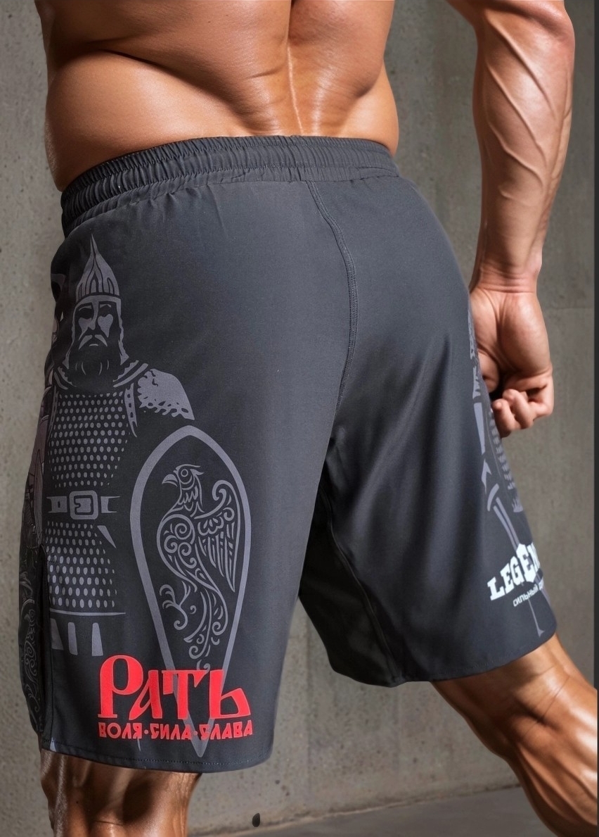 Шорты для ММА от коллаборации Legenda & РАТЬ — это боевая экипировка, достойная самых смелых.