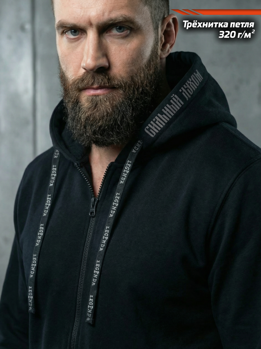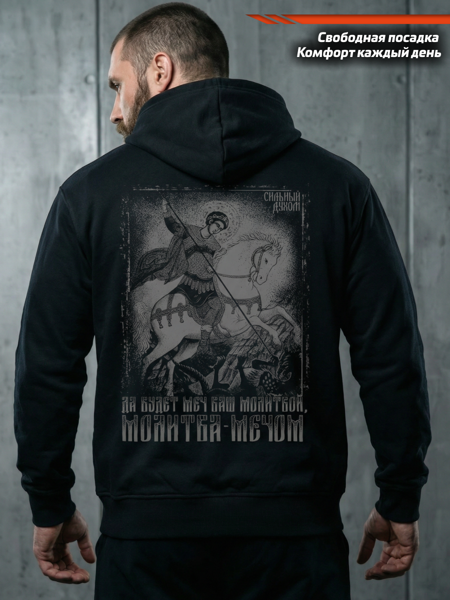 Толстовка мужская LEGENDA на молнии с принтом Георгий Победоносец.