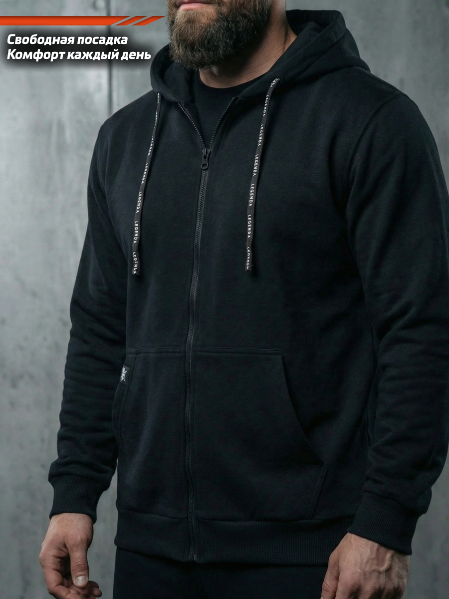 Толстовка с капюшоном и карманом на молнии мужская LEGENDA Urban черная