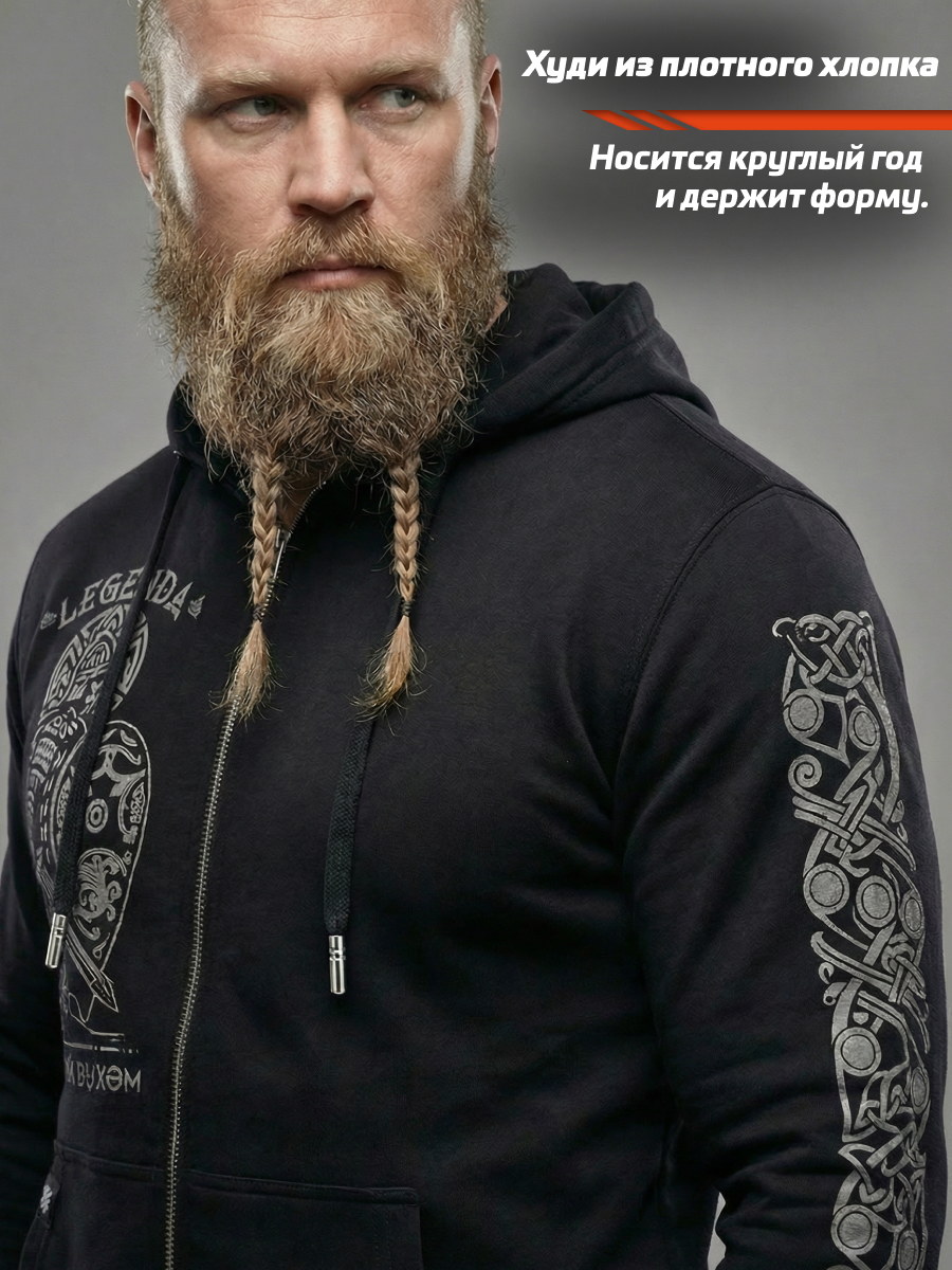 В толстовке "Варяг" от Legenda заключена эссенция мощи и непоколебимой воли древних варягов — легендарных воинов и путешественников, которые оставили свой след в истории. Толстовка "Варяг" изготовлена из высококачественной ткани трехниктка петля (без начеса) с составом 80% хлопок 20% полиэстер плотностью 320 г/м2, которая поддерживает оптимальный микроклимат кожи, отводя влагу и обеспечивая воздухопроницаемость даже в самых интенсивных условиях. Принт, нанесённый методом ДТФ на рукаве и методом шелкографии на груди, отражает историческую смелость варягов и остаётся ярким на протяжении многих лет эксплуатации.